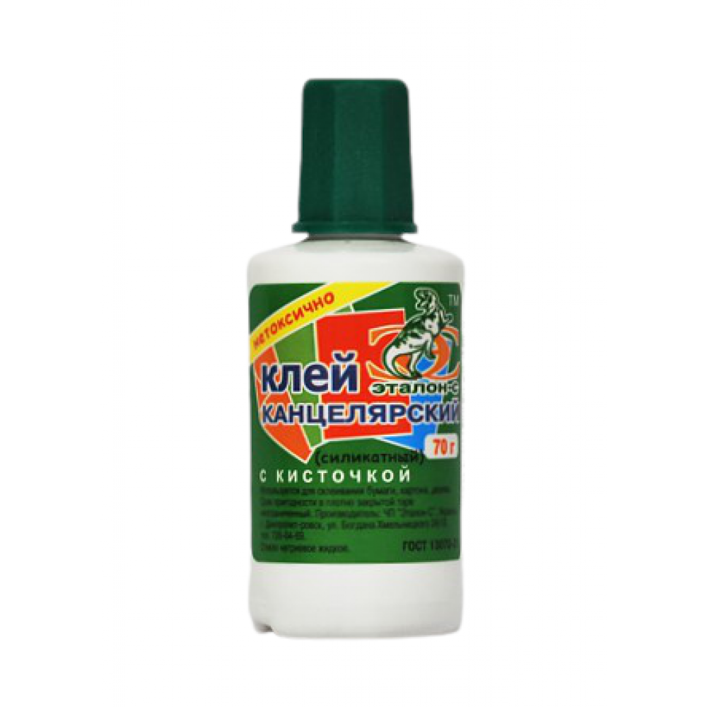 Клей канцелярский. Изготовлен из качественных веществ без вредных примесей. Предназначен для склеивания бумаги, картона и других материалов. Удобный в использовании.