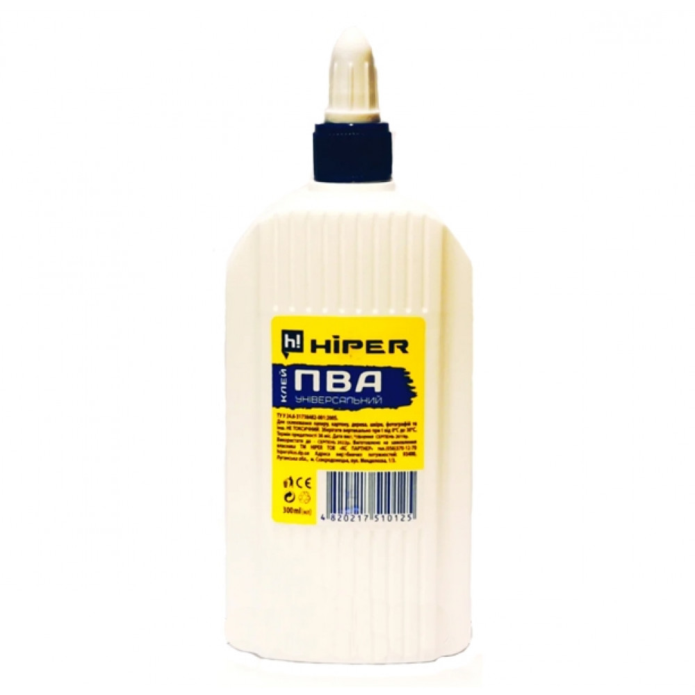 Клей ПВА универсальный ТМ Hiper с супер колпачком. Предназначен для повседневной работы в офисе, а также для работы дома, склеивания бумаги, тонкого картона, фото. Наносится при помощи колпачка-дозатора. Непременно пригодится школьникам на уроках труда. Клей быстро сохнет, экономичный в работе.