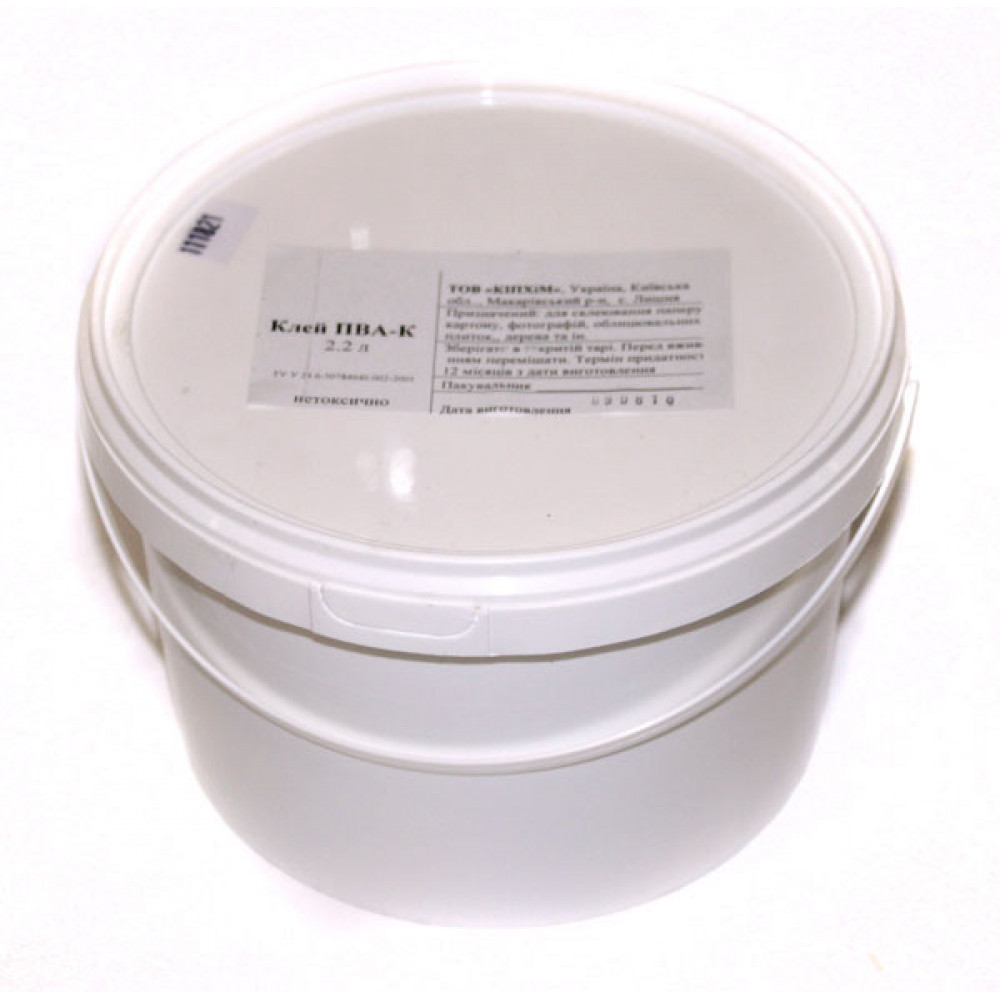 Клей ПВА ТМ КИП в пластиковом ведре. Предназначен для склеивания бумаги, картона, фотографий, дерева, текстиля.