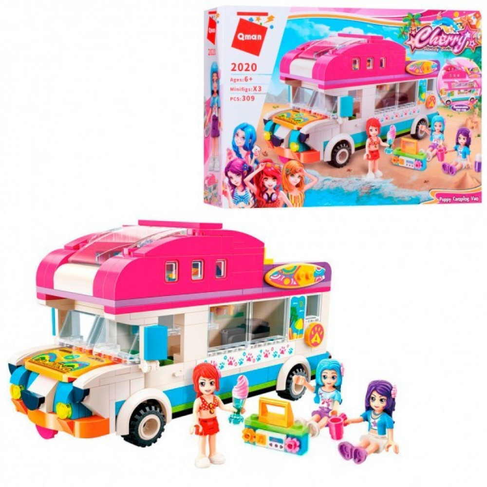 Конструктор для девочки – представляет собой один из самых доступных конструкторов, как по количеству деталей, так и по уровню сложности, и по цене. Подружки уезжают на отдых на озере и устраивают пикник на природе, фургон – дом на колесах, фигурки, мороженое, аксессуары. В наборе 309 деталей – домик на колесах, фигурки. Упаковка: картонная коробка. Размер: 35х25х6,5 см.