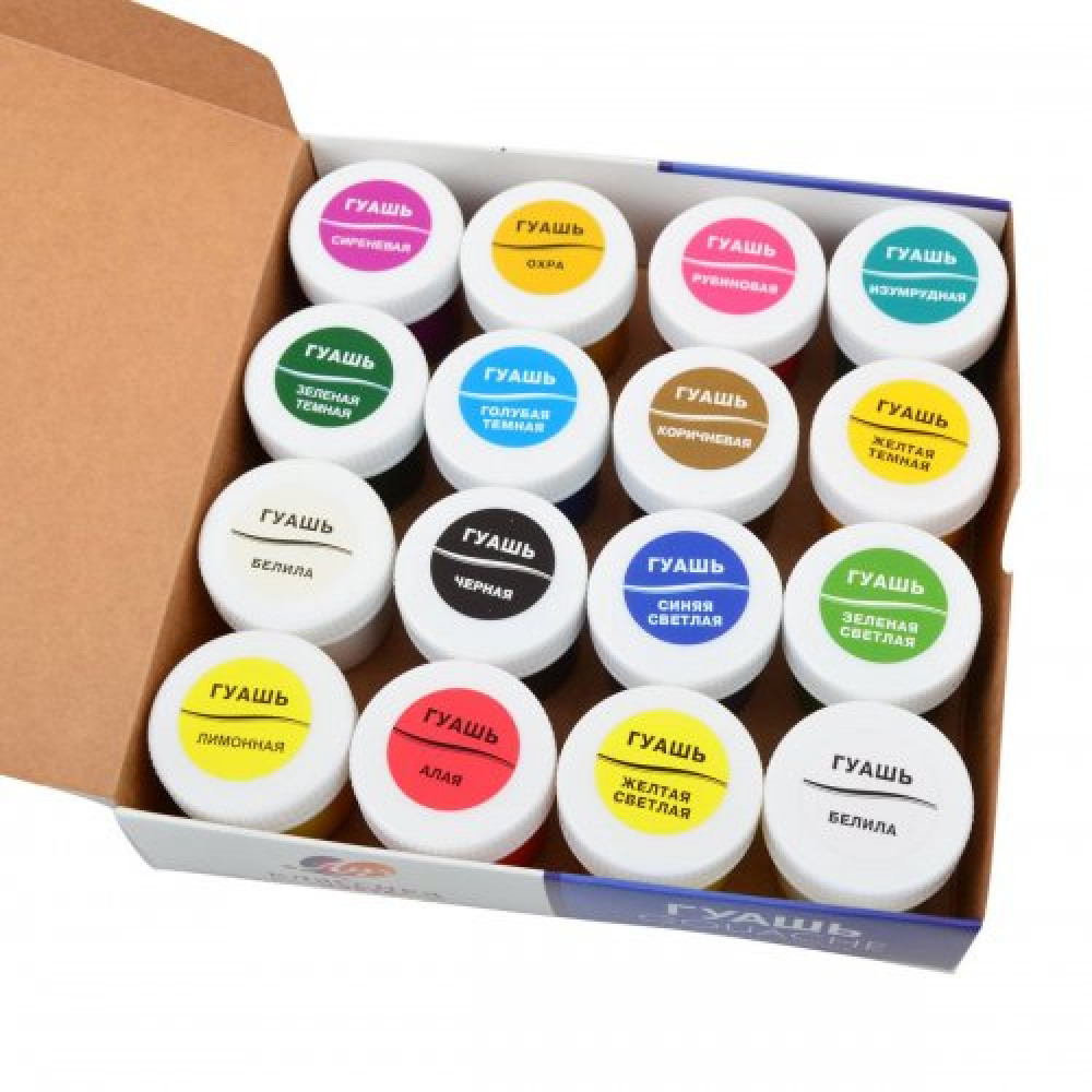 Краски хорошо смешиваются, позволяя получать новые чистые цвета и оттенки. Гуашь имеет отличную укрывистость. При высыхании краска не выцветает, приобретает бархатистую поверхность. Гуашь легко смывается с рук и одежды. Не имеет неприятного запаха.