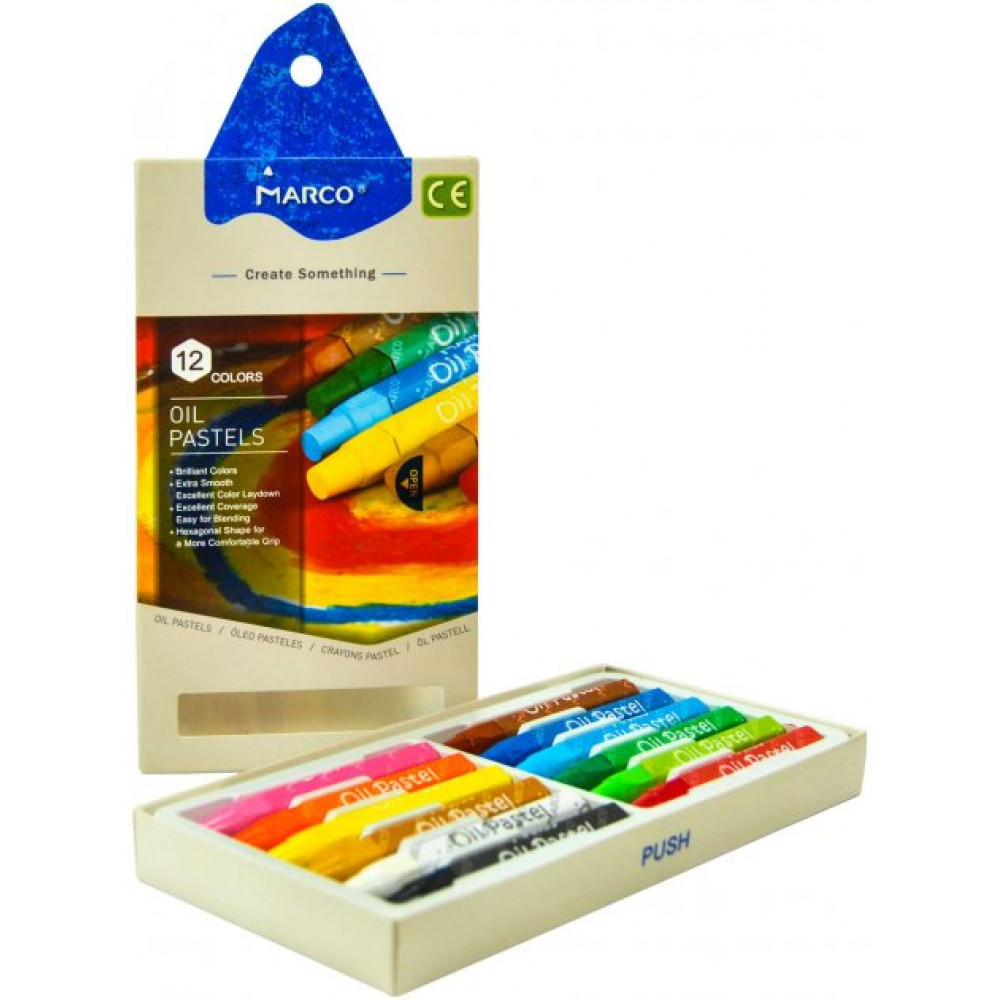 Пастель масляная Marco Create Something. Яркие насыщенные цвета, легко смешиваются. Замечательно подойдет для занятий в художественных школах и студиях. Масляную пастель можно использовать с масляными красками. Мелки обычно используются как на бумаге, загрунтованном холсте, так на других жестких поверхностях подходящих для масляной живописи. Масляная пастель по цвету более сочная, а при прокладке рисунка фактурная. Набор из 12 цветов. Диаметр 10 мм.