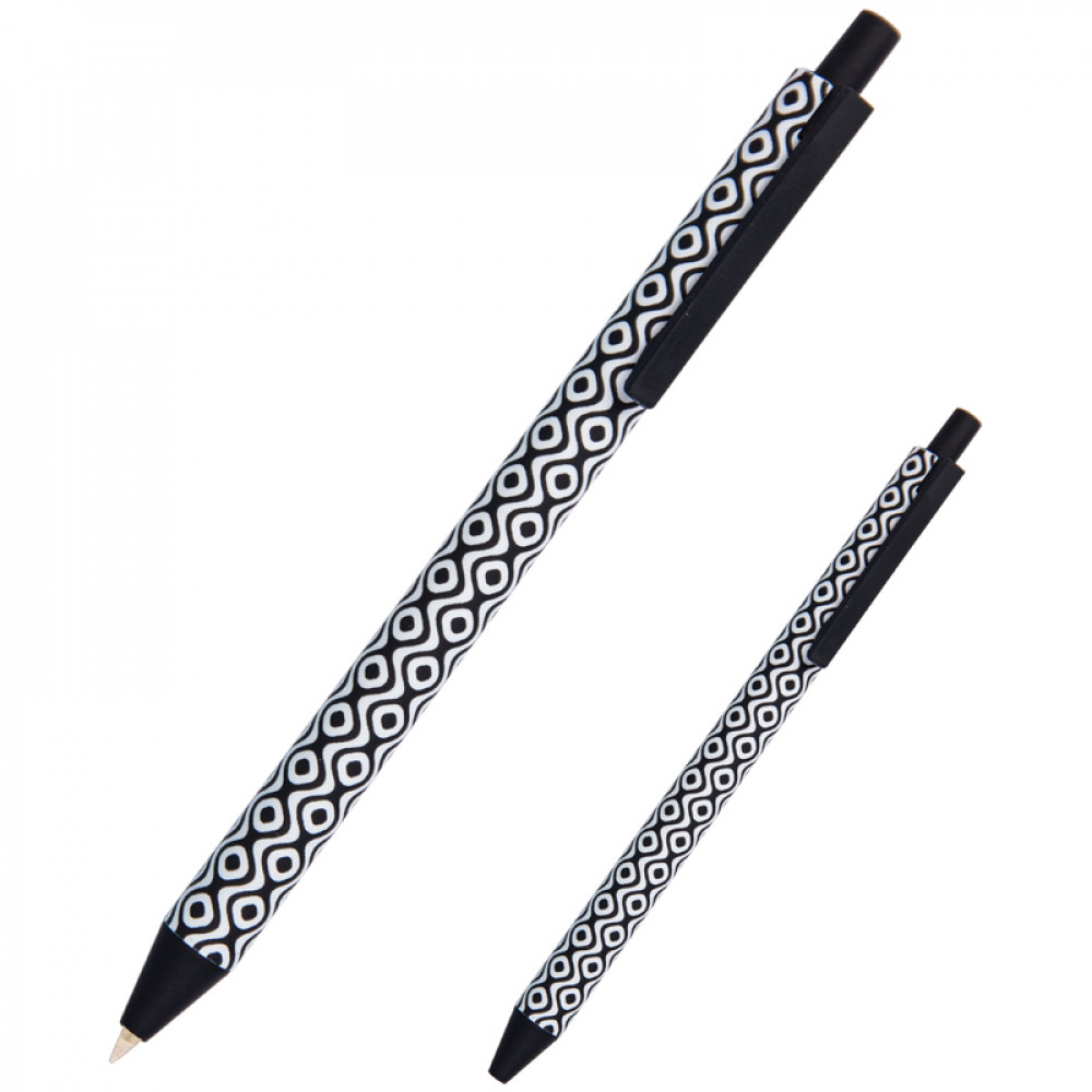 Ручка шариковая автоматическая Snake (AB1092-03-A) синяя – соединение стильного дизайна и безупречного функционала. Высококачественный пишущий узел диаметром 0,5 мм осуществляет бесперебойную равномерную подачу чернил. Ручка не требует сильного нажатия – пишет легко и плавно; оставляет насыщенный и четкий след. Изюминка модели – колоритный дизайн. Гладкий ровный корпус декорирован монохромным принтом с этническими мотивами. Геометрический орнамент Snake особенно прекрасен в контрастном переплетении черного и белого. Цвет чернил – классический синий, насыщенный и глубокий.
