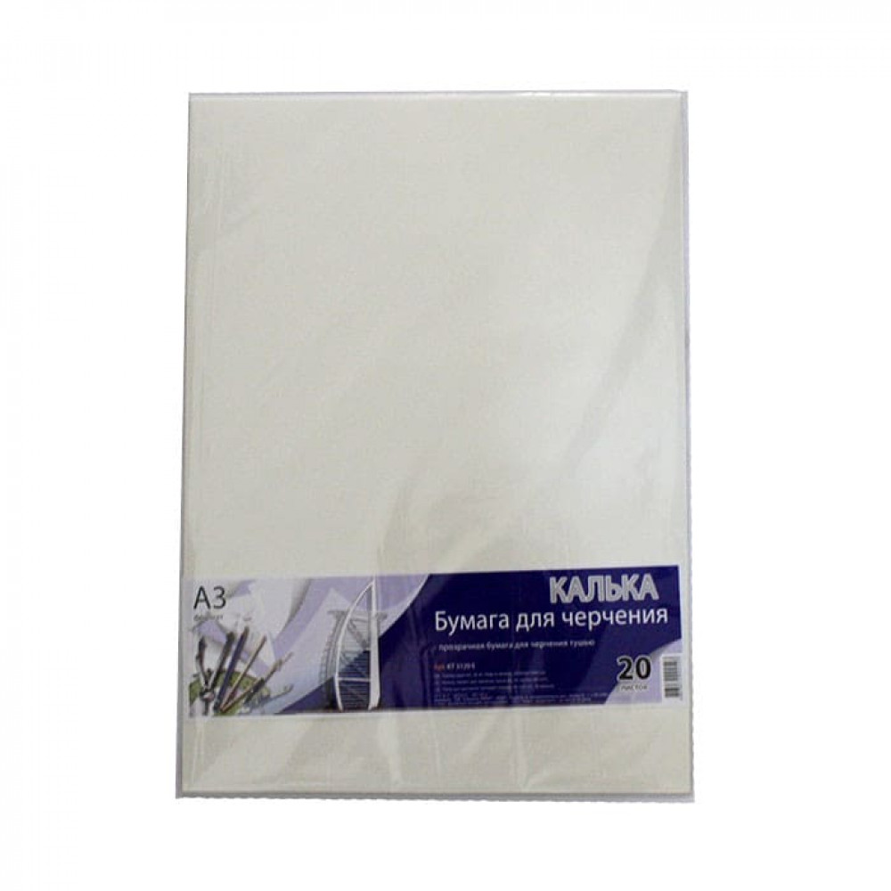 Калька під туш формату А3 призначена для креслярських і дизайнерських робіт лайнером або рапідографом. Використовується для нанесення зображень і креслень вручну. Щільність паперу: 42 г/м2. 20 аркушів в упаковці.