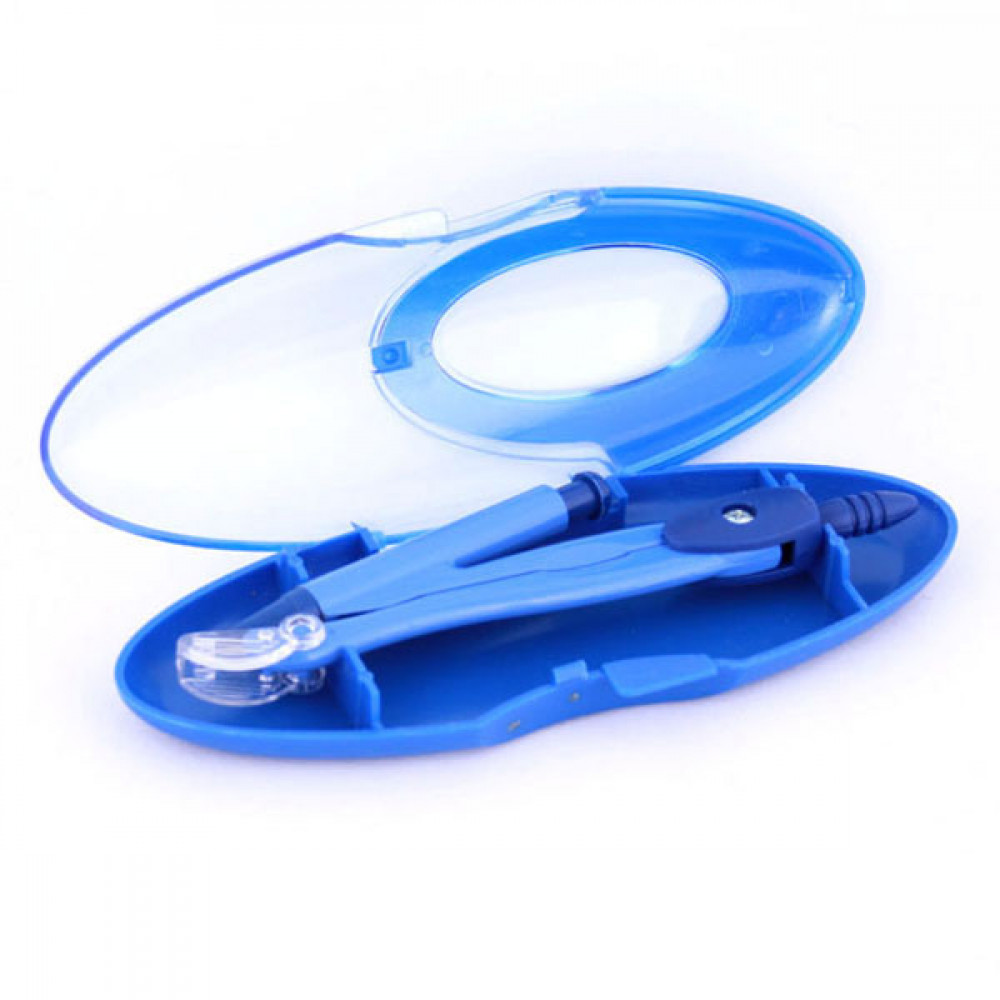 Циркуль висотою 12,5 см з механічним олівцем. На кінці однієї ніжки розташовується голка, на кінці іншої - тримач з олівцем. В рожевому і блакитному виконанні. Оригінальний овальний пластиковий футляр. Циркуль використовується для креслення кіл і дуг кіл, також може бути використаний для вимірювання відстаней. Застосовується в геометрії, кресленні, для навігації та в інших цілях.