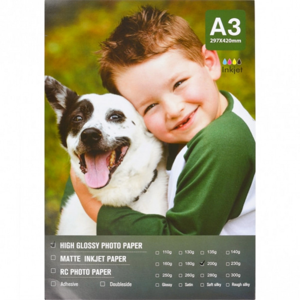 Сьогодні існують фотопринтери, які можуть допомогти вам створити дуже красиві і досить довговічні фотознімки, які ви з задоволенням поставите в рамку або ж подаруйте своїм родичам і друзям. Фотопапір гарантує Вам якість і яскравість друку Ваших фотографій. Фотопапір відповідає всім вимогам, що пред'являються до паперу фотографічної якості. Екологічна як у використанні, так і при виробництві. Сумісна з усіма поширеними моделями принтерів. Чіткість і яскравість відбитків. Відтворення кольорів з точною передачею всіх відтінків. Формат А3. Щільність 200 г/м², 20 аркушів.