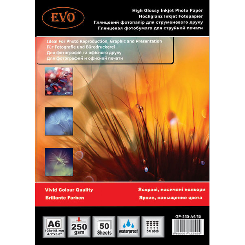 Глянцевий фотопапір Evo 250 г A4 50 стор. Фотопапір ідеально підходить для друку фотографій, офісних документів, буклетів, графічних зображень.