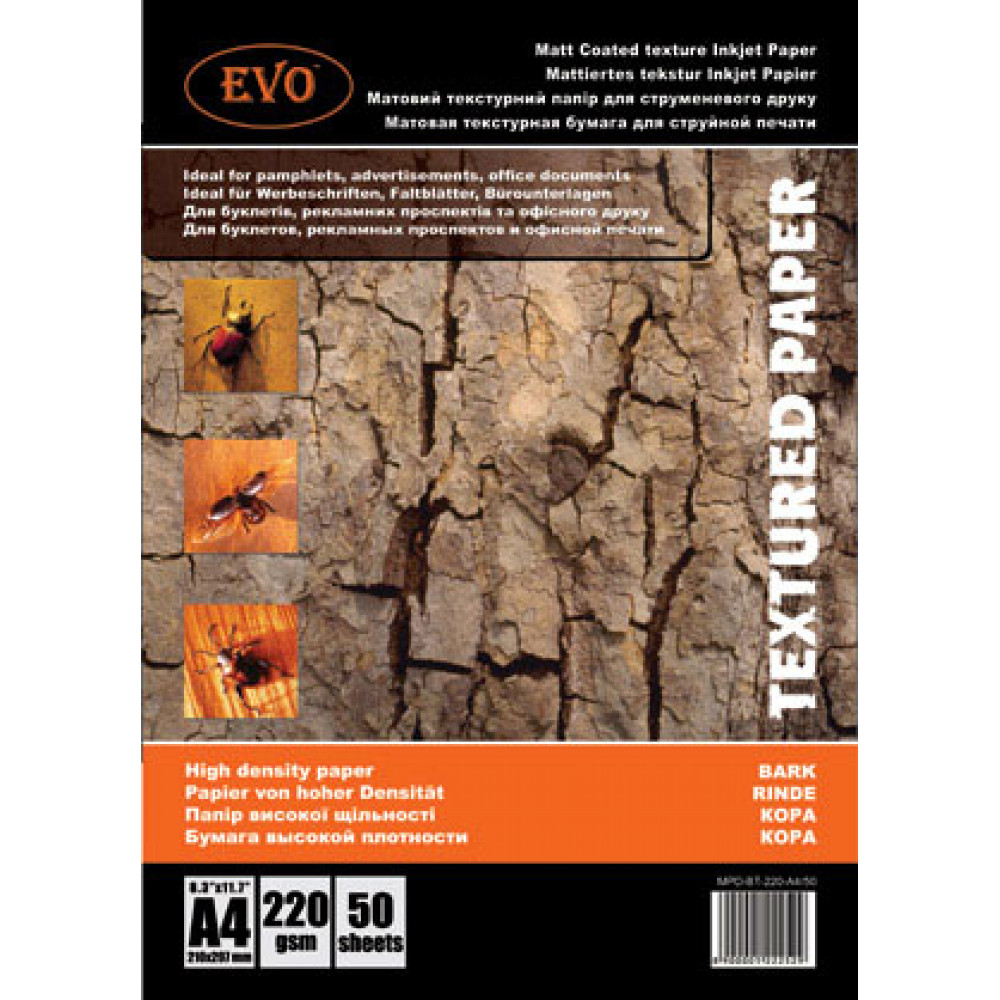 Матовий фотопапір Evo 220 г A4 50 стор. Фотопапір ідеально підходить для друку фотографій, офісних документів, буклетів, графічних зображень.