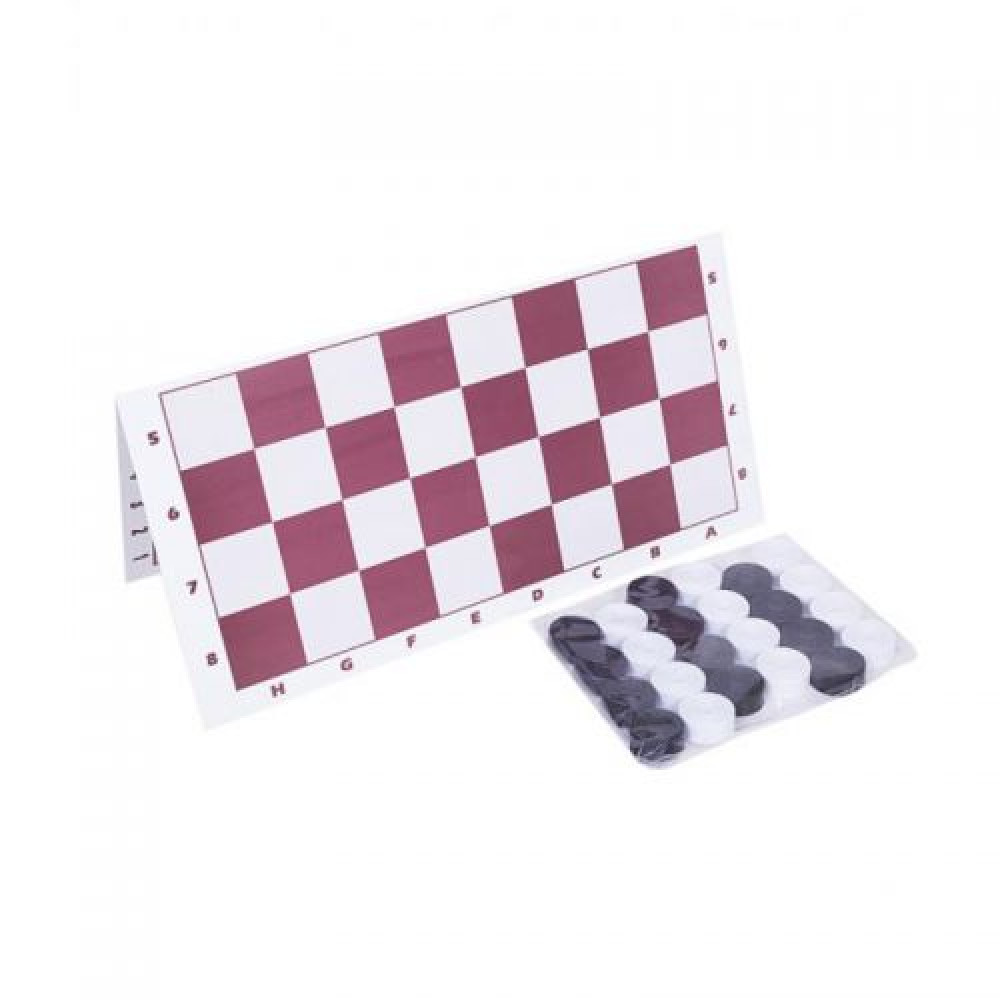 У набір входить дошка, 12 чорних та 12 білих шашок.