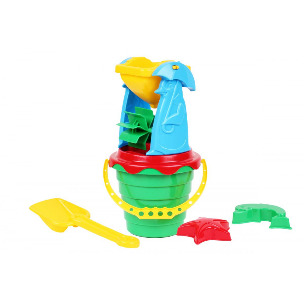 Оригінальна іграшка у формі пінгвіна з парасолею. Колесо рухається під дією води або піску, які малюк наливає або насипає в контейнер. Основа іграшки - сито для піску. Комплектується відерком "А", двома пасочками і лопаткою.