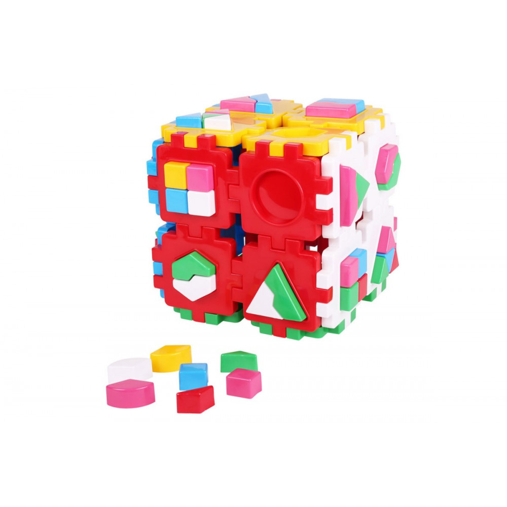 Великий куб із різноманітними геометричними фігурами, які вставляються у відповідні отвори основи. Щодня малюк може знаходити нові способи збирання продукції.