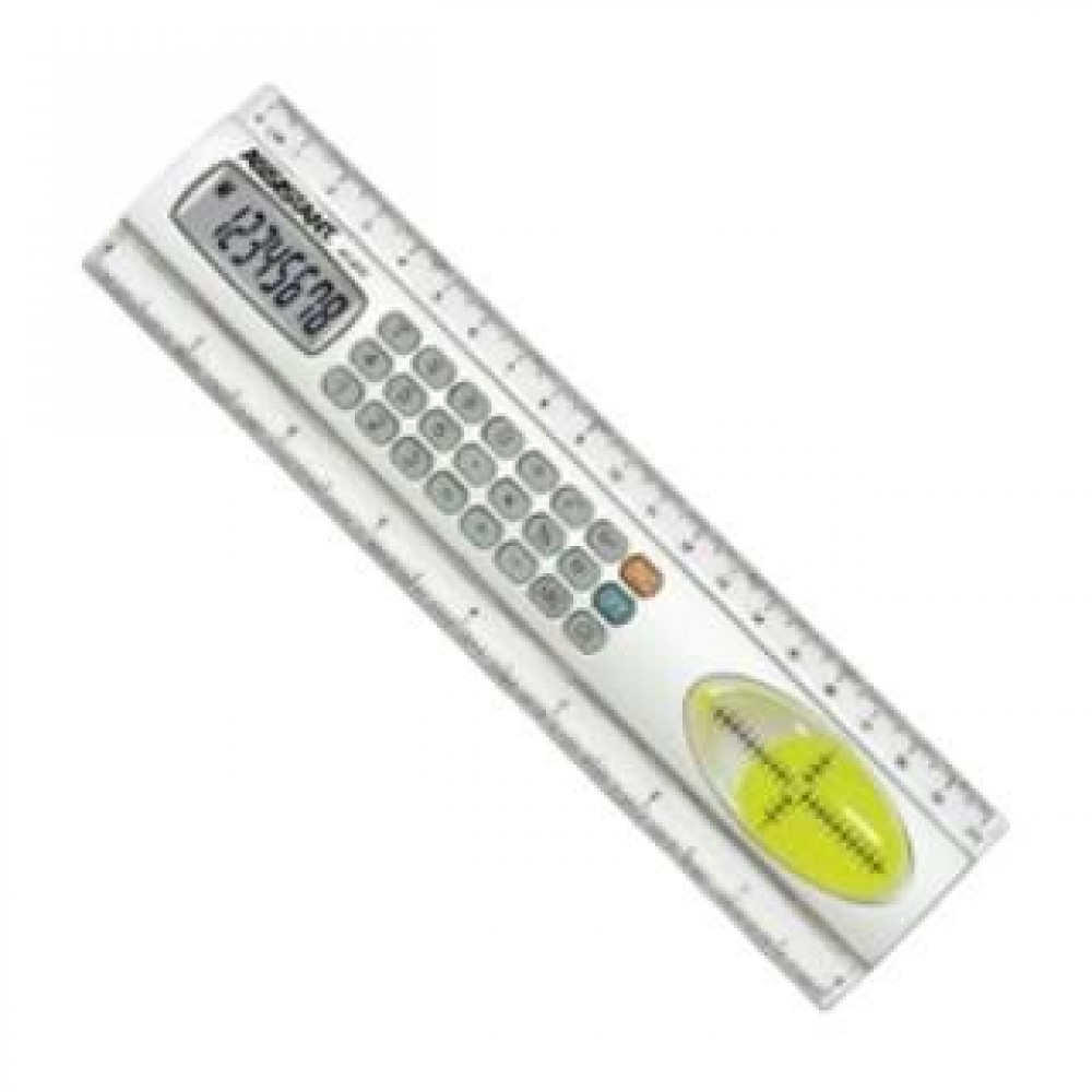 Функції калькулятора: 8-ми розрядний дисплей; обчислення відсотків; чутлива клавіатура; живлення від батарейки; гумові кнопки; великий дисплей; розмір: 53x215x10 мм.