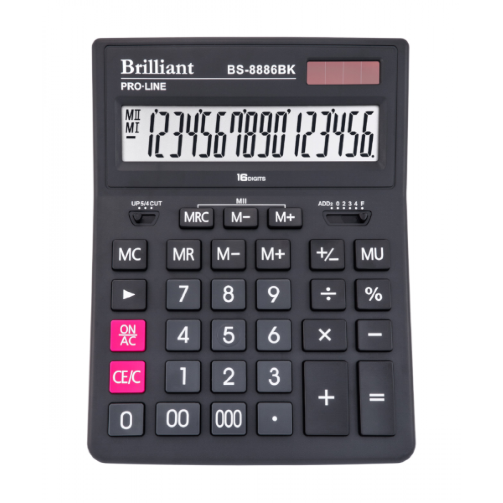 16-розрядів (кількість цифр на екрані), дворівнева пам'ять, клавіша операції "підвищення ціни", клавіша зміни знака числа, клавіша видалення останньої цифри, клавіша "00", перемикач "Режим округлення", перемикач "Кількість знаків після коми", пластикові клавіші, захист від залипання клавіш, автовимкнення живлення, літієва батарея живлення, сонячна батарея, розміри: 155х205х35 мм, вага: 204 г