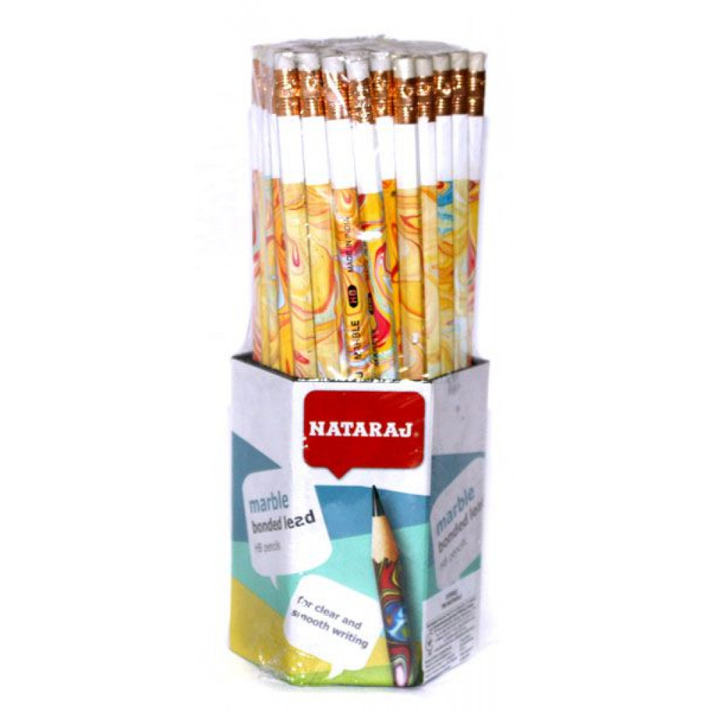 Олівець графітний Nataraj Marble з гумкою. Твердість грифеля НВ. Форма олівця: шестигранний, загострений. Матеріал: дерево. Колір корпусу асорті.