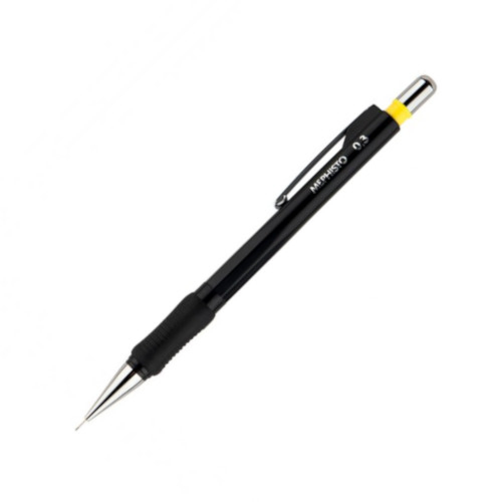 Пластиковий корпус. Металеві деталі. Прорезинена область захоплення. Гумка під ковпачком. Ширина сліду 0,3 мм.