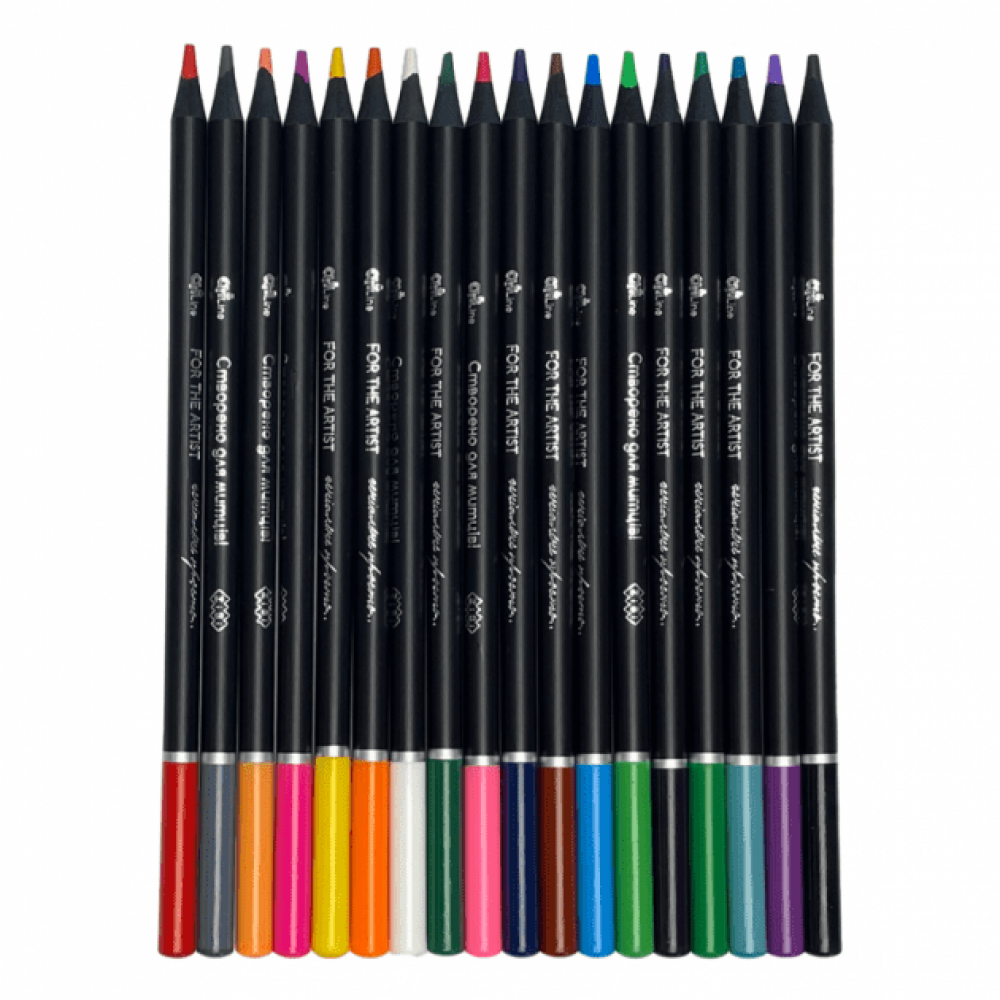 Торцева частина та верх олівців вкриті емаллю в колір грифеля, що дозволяє легко підбирати необхідний відтінок