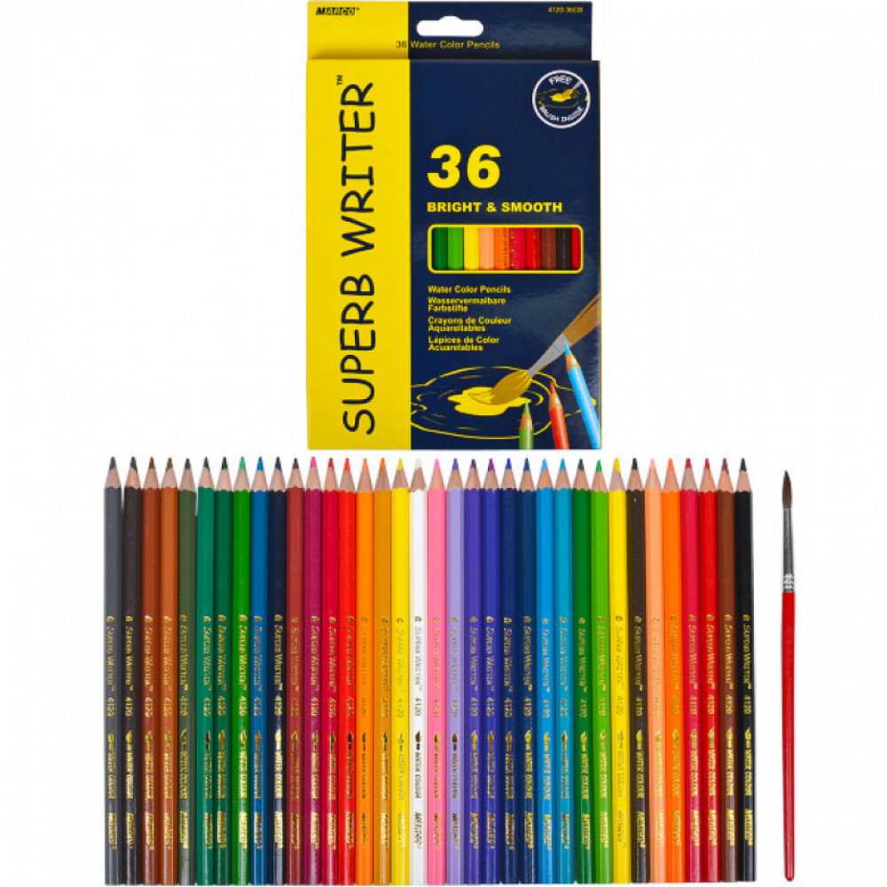 Акварельні олівці Marco Superb Writer (4120-36CB) спеціально розроблені для приємного малювання дітям. Підійдуть для застосування в школах, дошкільних установах і для домашнього використання. Картонна коробка з 36 м'якими кольоровими олівцями ідеально підходять для початківців маленьких художників. Кольори - яскраві, соковиті і не вигоряють на сонці. Відтінок на папері відповідає кольору на корпусі олівця. Олівці Superb Writer виготовлені з 100% сертифікованої деревини. У традиційній 6-гранній формі і екологічно чистим матовим покриттям. Високоякісне ядро гарантує інтенсивну віддачу при малюванні яскравими кольорамии. У комплекті є пензлик.