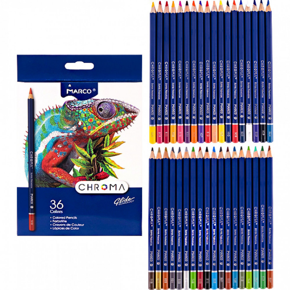 Олівці кольорові Marco Chroma 36 кольорів (8010-36CB) - це нова лінійка професійних олівців Marco. Корпус Chroma зроблений з деревини тополі, а діаметр грифеля становить 3.3 мм. Якість даної серії можна порівняти з моделями Renoir. Припадуть до смаку всім любителям малювання, а також художникам і ілюстраторам. Обов'язково спробуйте їх в справі!