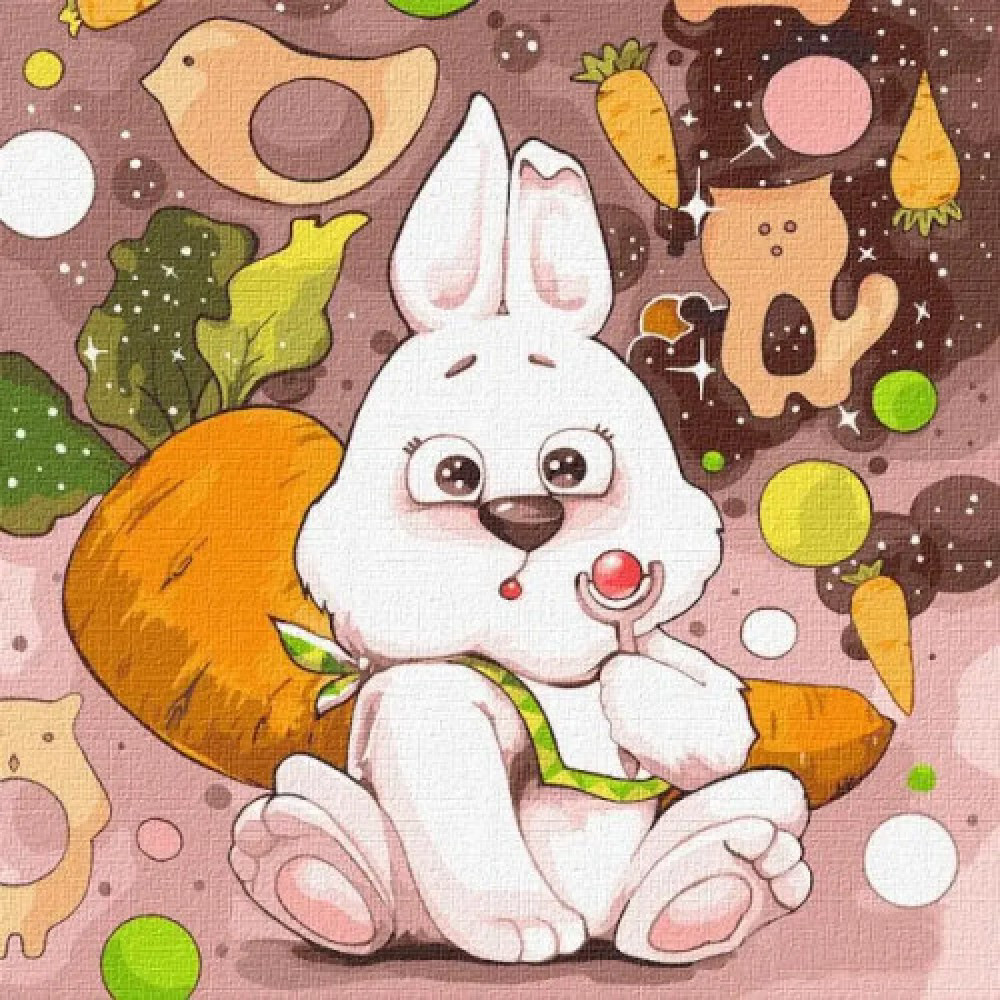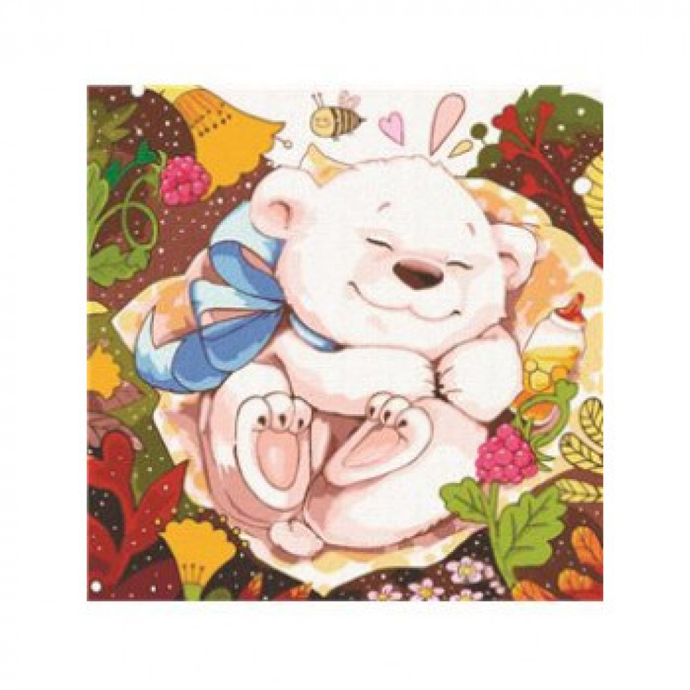 Набір включає: бавовняне полотно з пронумерованим контурним малюнком на дерев'яній рамці, комплект пронумерованих акрилових фарб на водній основі, з нетоксичних компонентів, 2 настінні петельки і саморізи.