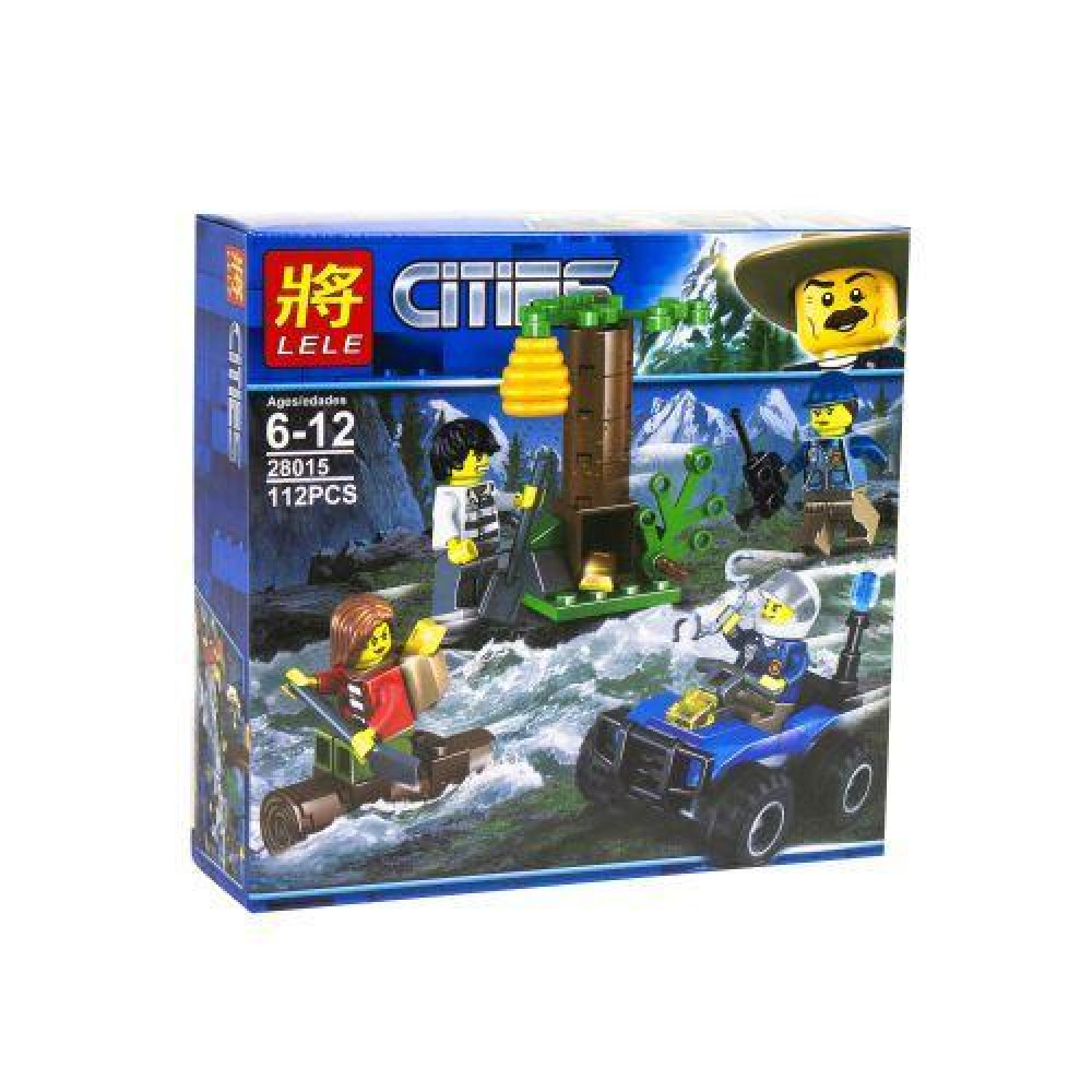 Конструктор 112 деталей. Конструктор дозволяє зібрати сцену викрадення злитків золота і втечу злочинців по гірській річці. Наздогнати грабіжників намагатимуться 2 поліцейських на квадроциклі. У наборі 4 мініфігурки. Зібравши його, дитина зможе грати в різні сюжетно-рольові ігри.