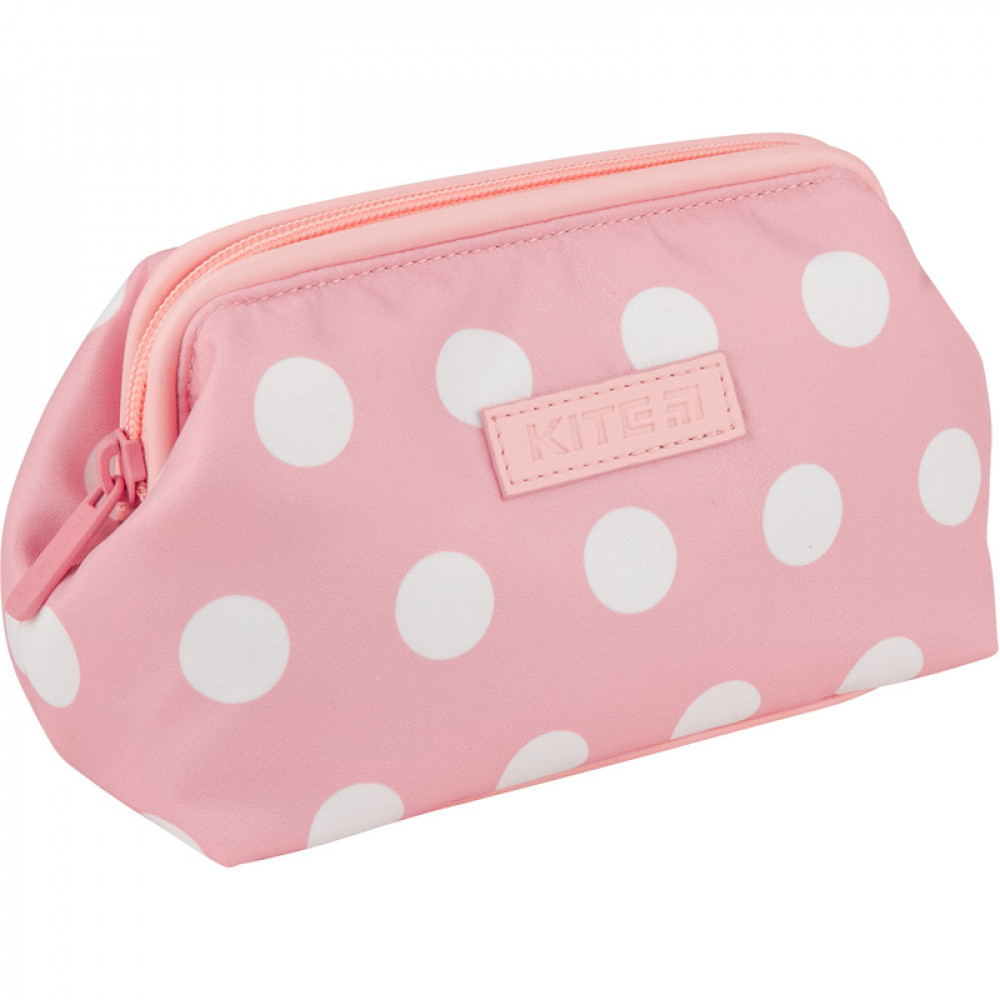 Косметичка-гаманець Kite К20-608 з яскравим принтом в горошок. Вона досить компактна, але при цьому здатна вмістити чимало секретів жіночої краси. Легко відмивається від забруднень, залишених пудрою, помадою або тональним кремом. 1 просторе відділення. Закривається на блискавку. Матеріал: PU, поліестер. Зносостійкий, гнучкий, легко витирається вологою серветкою, витримує навантаження на розриви. Стійкий до вигоряння, тривалий час зберігає первинний вигляд і характеристики.