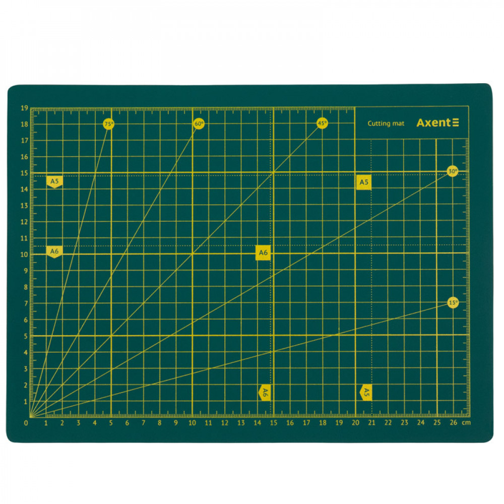 Макетний килимок Axent 7903-A з щільної основи багатошарового синтетичного матеріалу дозволяє різати ножем м'яко і безпечно. Використовується для різання паперу, тканини, картону, шкіри і т.д. Має властивість самовідновлення після порізів. Сантиметрова розмітка. Товщина 3 мм.