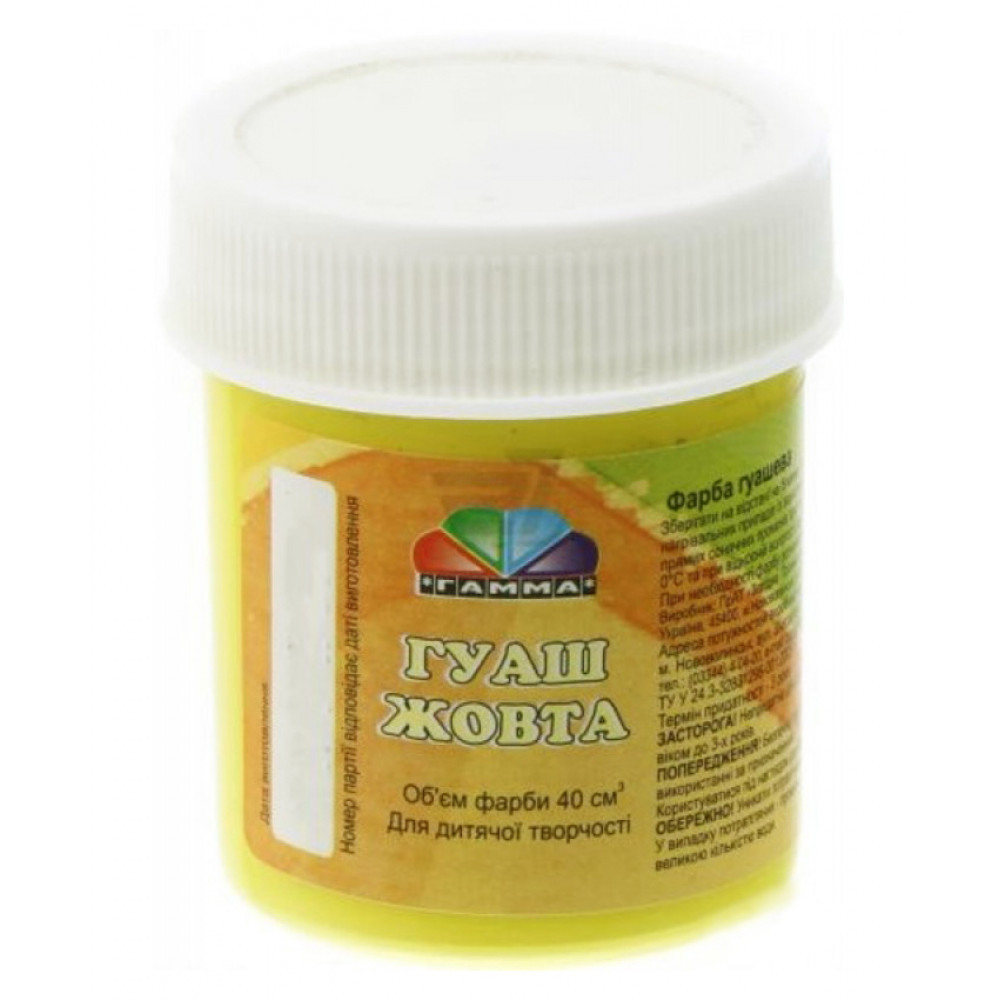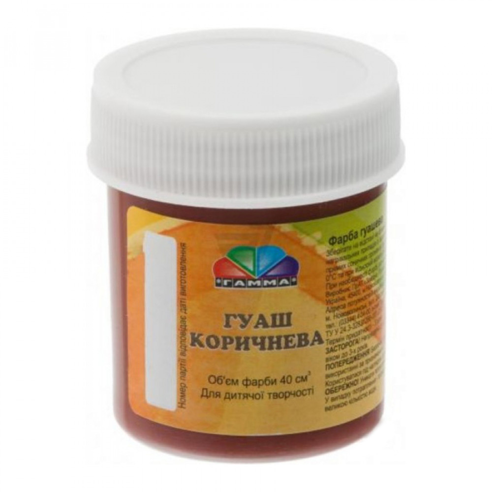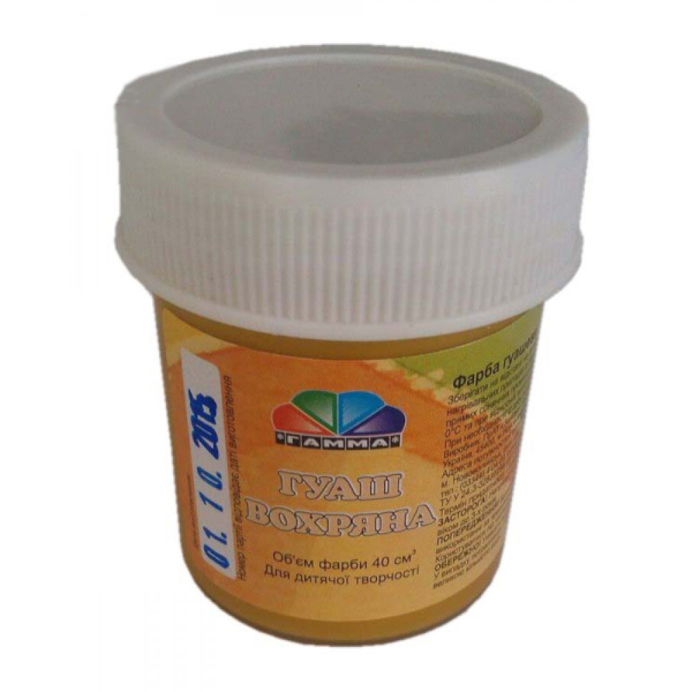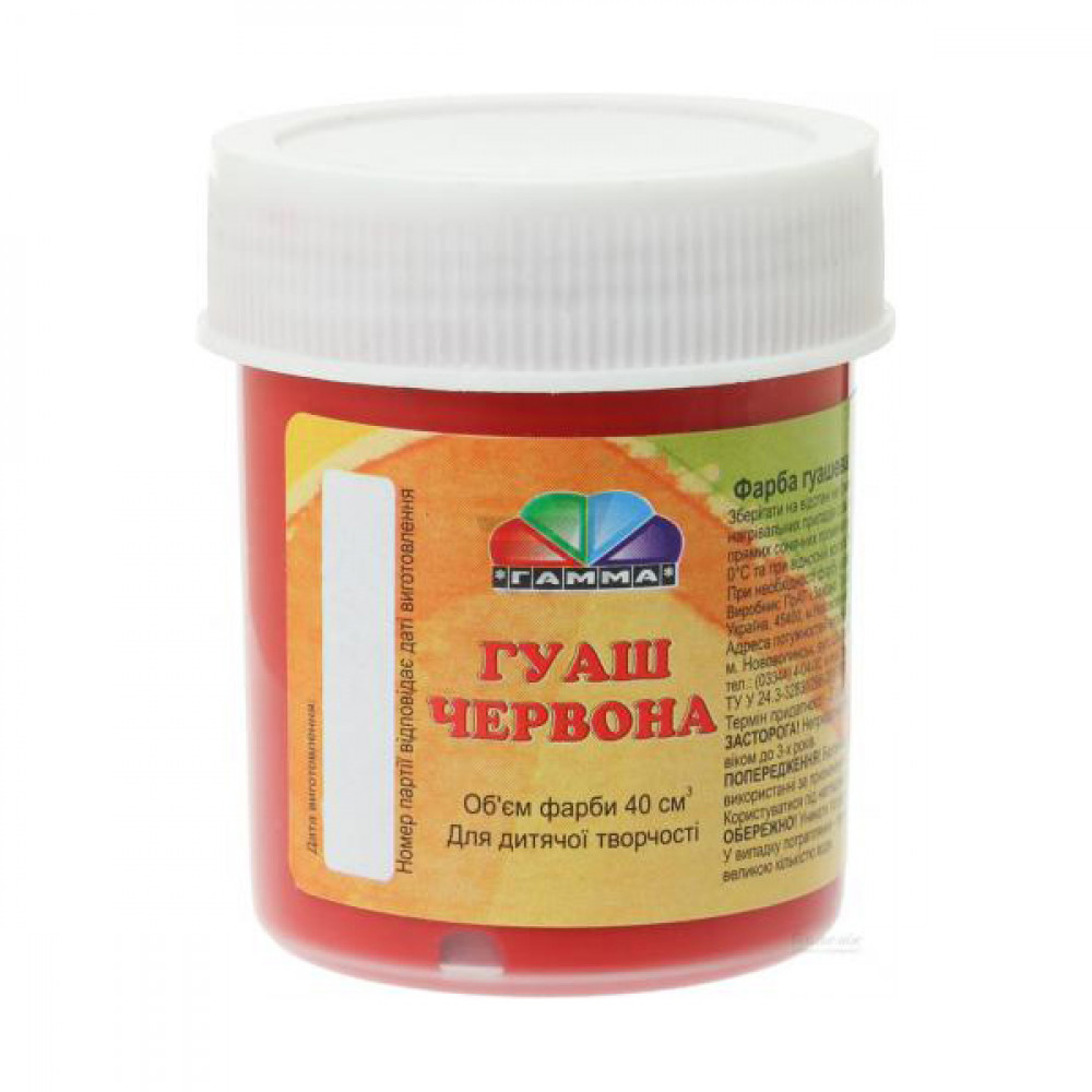Гуашева фарба призначена для художників. Використовується для малювання та живопису, не розтікається, прекрасно поєднується, практична в роботі - сохне протягом декількох хвилин. Не втрачає насиченості кольору після висихання. Може використовуватися на різних засадах: папір, картон, дерево, художнє полотно. На водній основі, не токсична.
