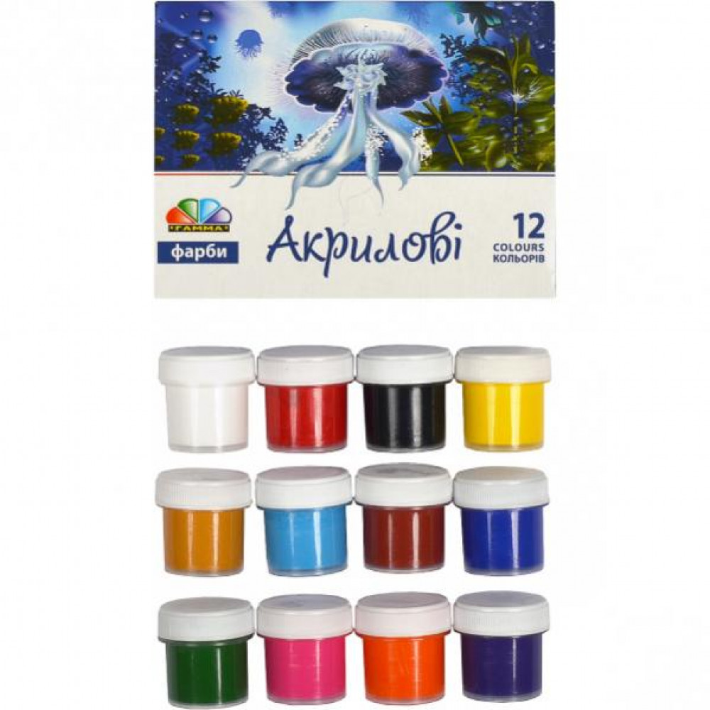 12 кольорів, обсяг фарби одного кольору 10 мл. Фарбою можна працювати не тільки на папері, а й на полотні, на тканині, картоні, фанері. Фарба широко застосовується в декораційного живопису, при виконанні різних ескізів. Обсяг: 120 мл (12х10 мл).