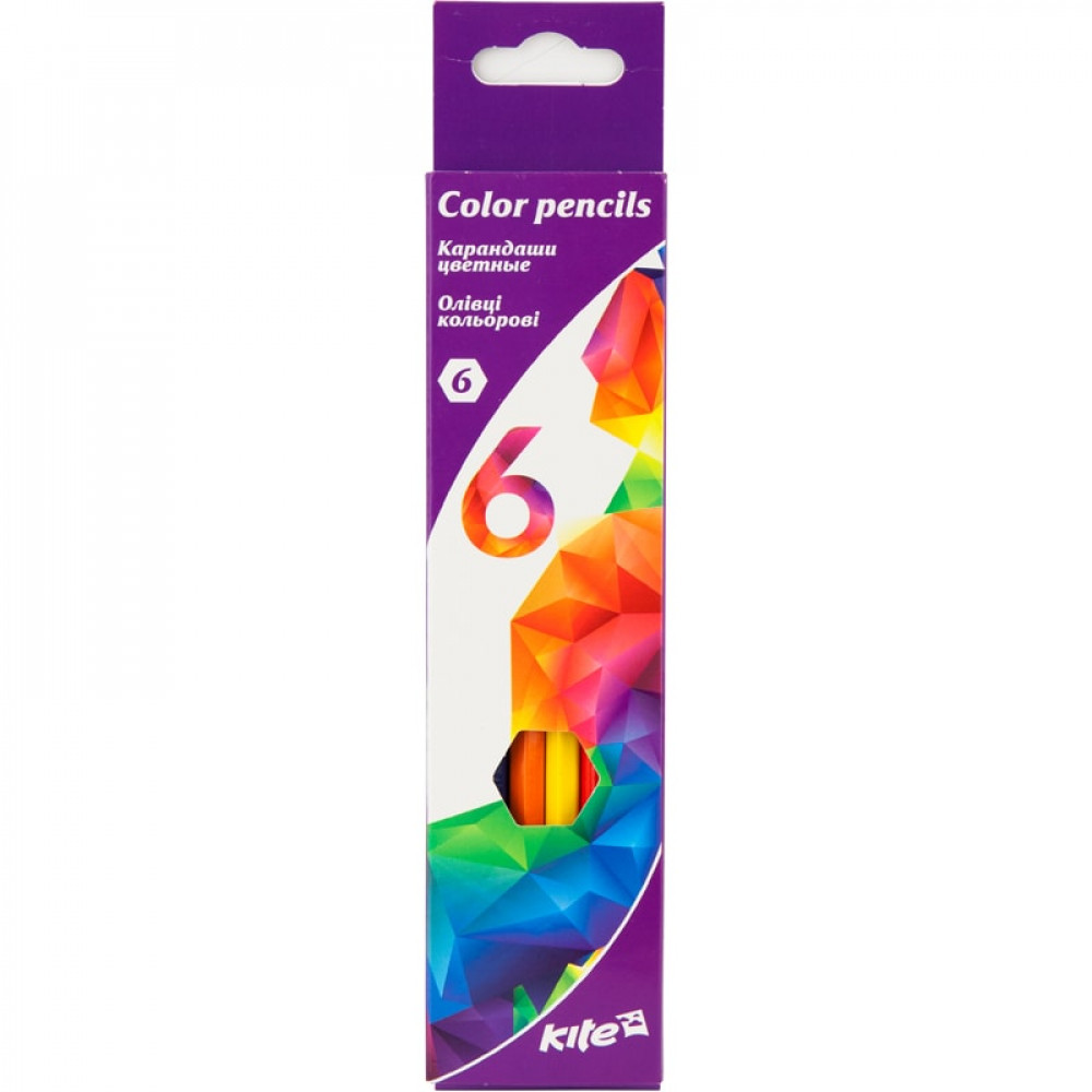 Кольорові шестигранні олівці Kite в картонній упаковці. Олівців в наборі 6, палітра гармонійна і економить місце в пеналі і рюкзаку дитини. Дитячі олівці малюють м'яко, при легкому натисканні дитина отримає яскраву картинку без праці. Грифель товщиною в 3 мм малює плавно, не кришиться і не дряпає папір. При заточуванні або падінні не ламаються і не кришаться. Кольорові олівці виготовлені з міцної натуральної деревини. Олівці покриті лаком в тон кольору, який запобігає розсиханню і появі тріщин на корпусі. Довжина виробу 175 мм. Набір олівців Kite рекомендований для дошкільнят і школярів.