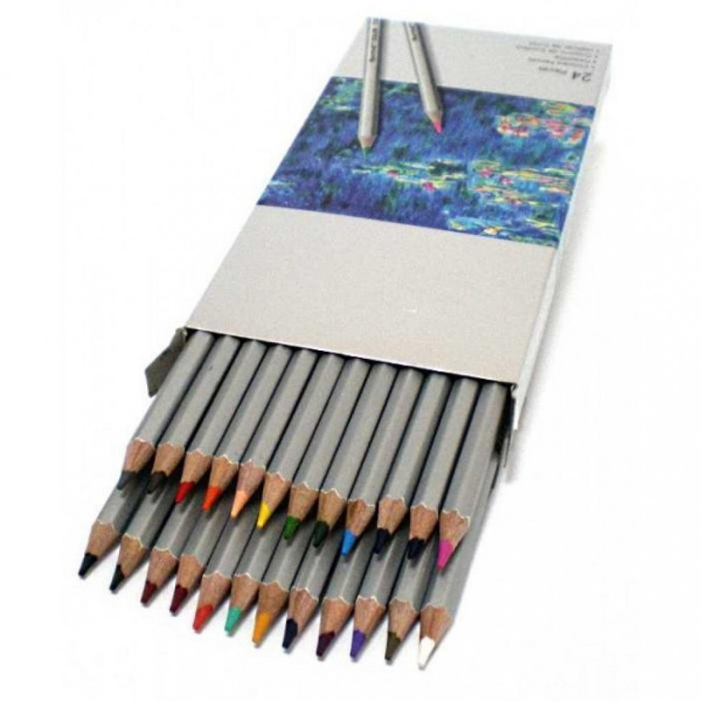 Виготовлені з натуральної високоякісної деревини, стійкий до ударів грифель товщиною 3.3 мм, барвистих 24 кольорів, корпус шестигранної форми в картонній упаковці.