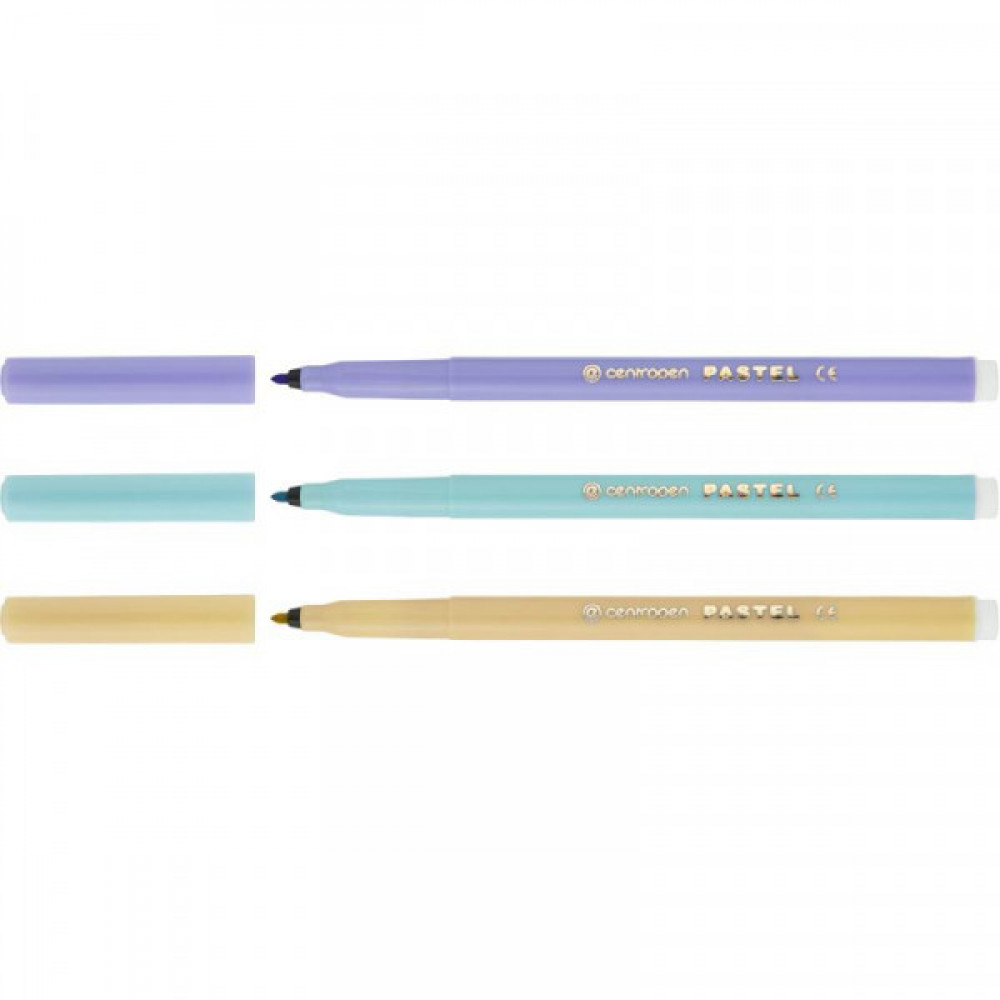 Фломастери з легко відпираються чорнилами на водній основі. Пастельні кольори. Легко змиваються з рук і відпираються з одягу. Чорнила безпечні для здоров'я. Круглий пишучий вузол. Ширина сліду 1-2 мм. Ергономічна форма захоплення зменшує напругу м'язів пальців. Вентильований ковпачок. Корпус з поліпропілену. Упаковка з еврозавесом. Термін зберігання - 5 років.