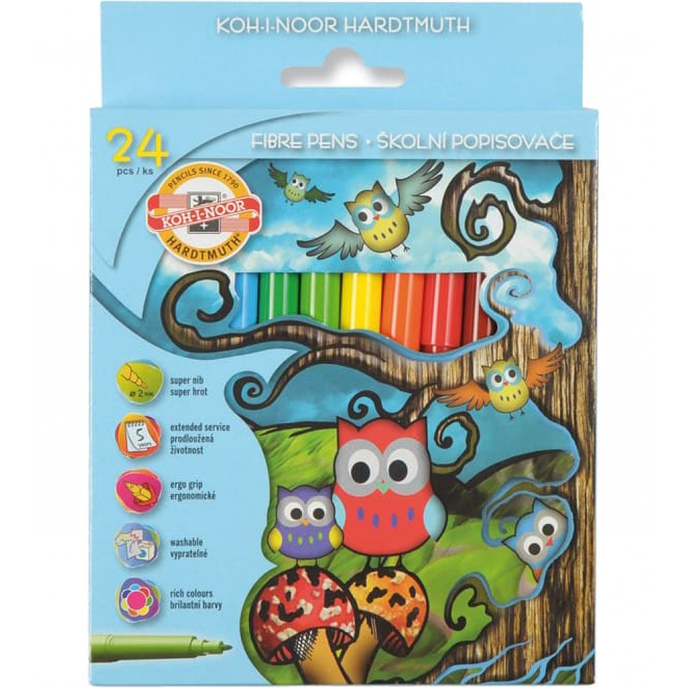 Класичні шкільні фломастери. Волокнистий пишучий вузол залишає яскравий слід, пише м'яко і не дряпає папір. Вентильований ковпачок робить процес малювання безпечним. Відповідають європейському стандарту EN-71. Термін придатності - 5 років. Картонна упаковка.