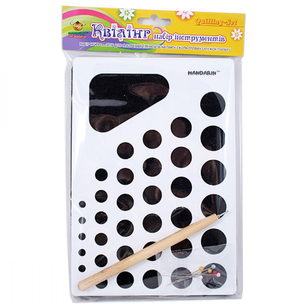 Набір призначений для створення елементів квілінгу. У набір входять: дошка для квілінгу (пластик/ЕВА) - 1 шт., Стік для квілінгу (дерев'яна ручка зі сталевим наконечником) - 1 шт. Виріб є безпечним для здоров'я, не містить шкідливих речовин. Рекомендується для використання в дошкільних та шкільних установах.