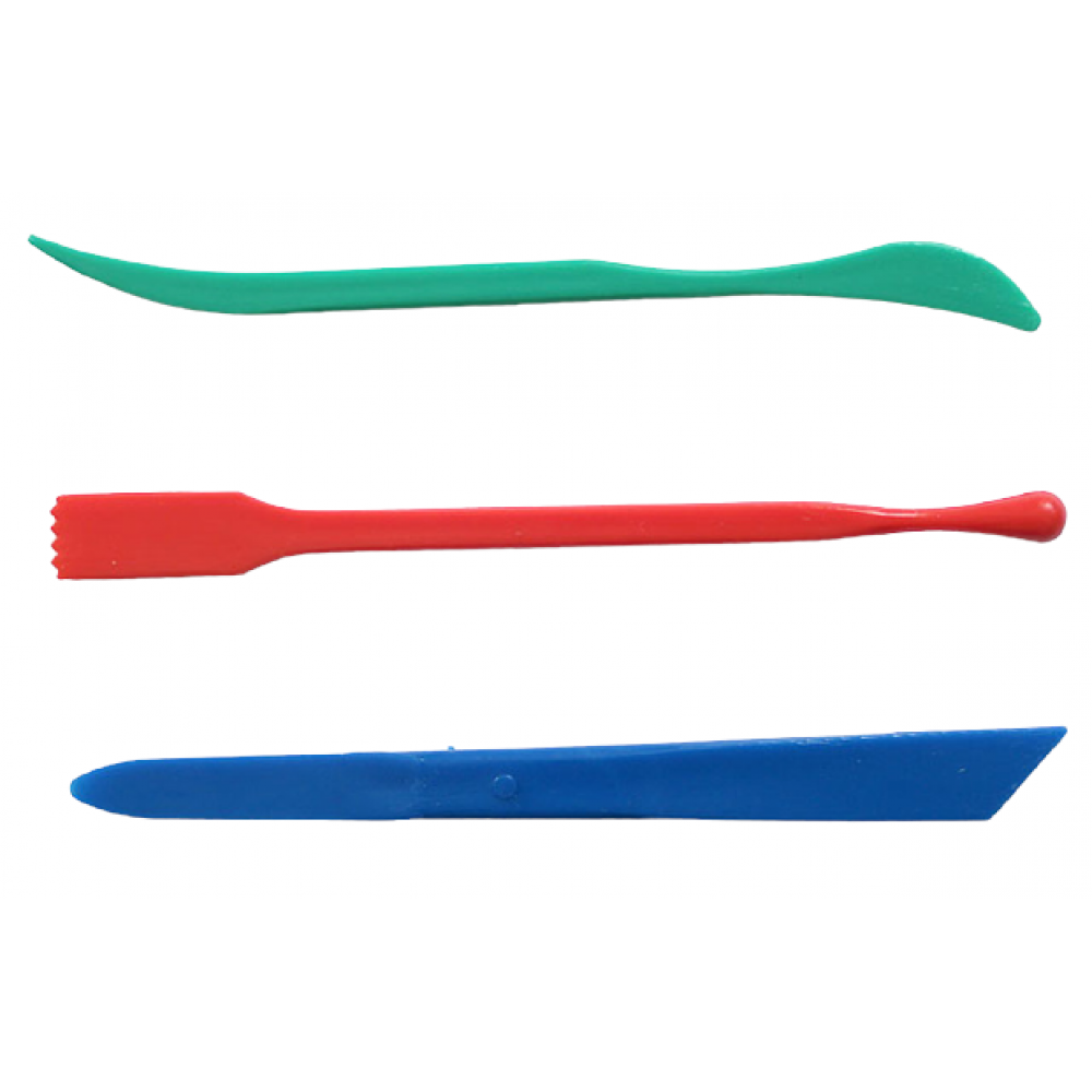 Набір з 3 інструментів пластик. Стеки призначені для різання, текстури і роботи з дрібними деталями, які важко виконати руками. Представлені в асортименті кольорів.
