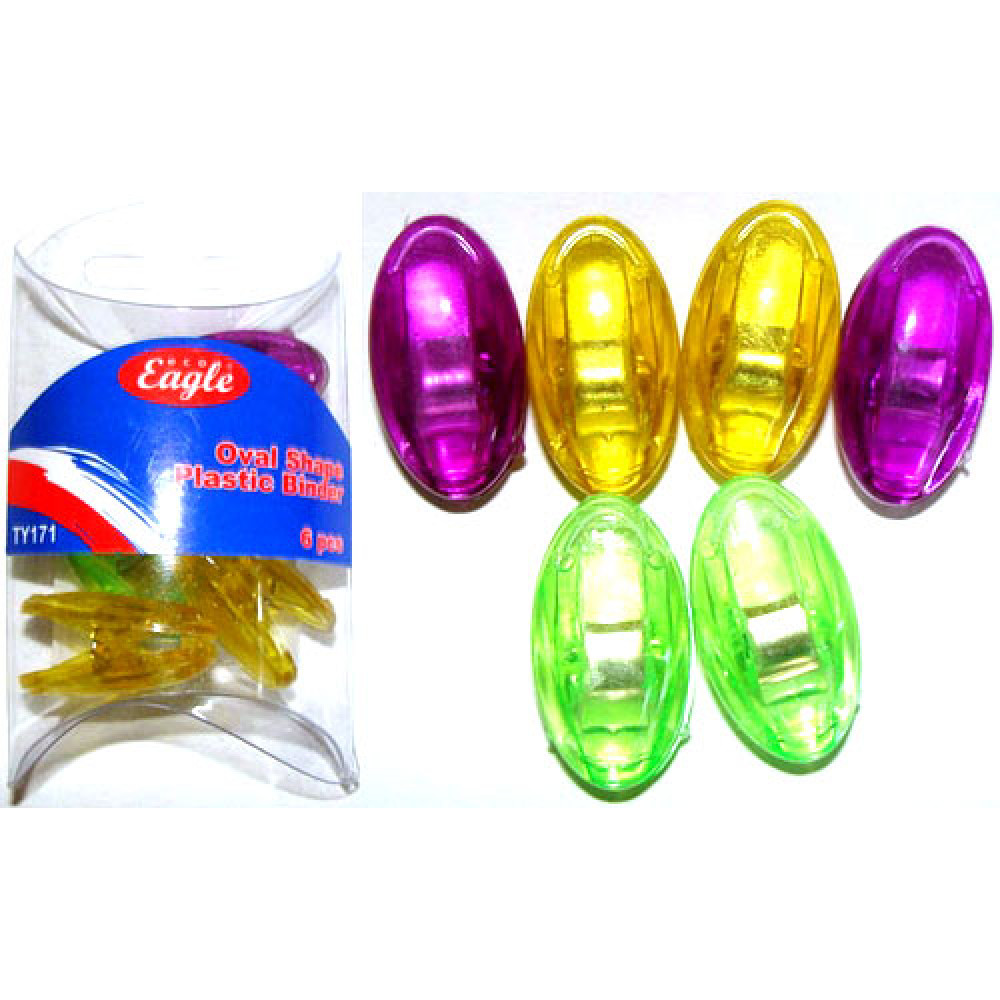 Затиск для паперу ТМ Eco-Eagle TY171 пластиковий в формі овалу, напівпрозорий кольоровий, призначений для скріплення аркушів.