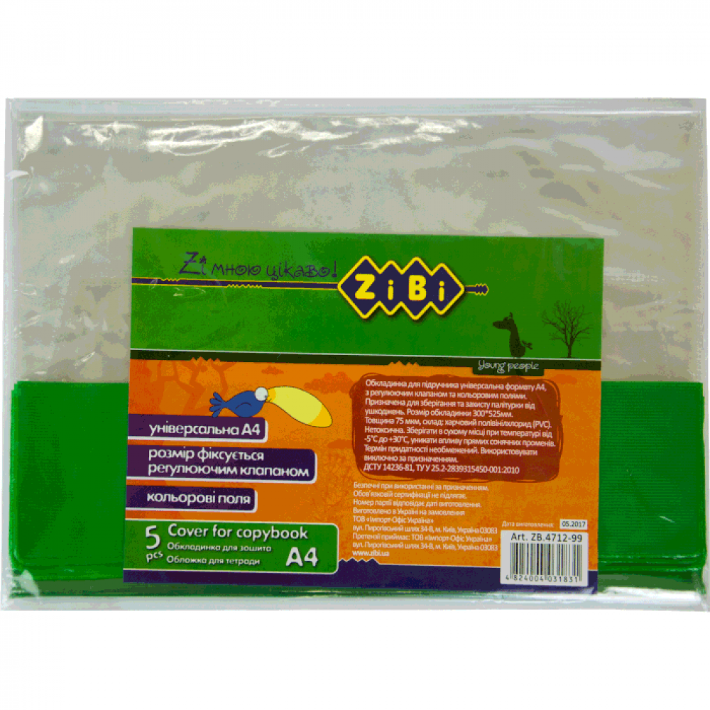 Прозора обкладинка з кольоровими полями. Базовий формат А4. Ширина надійно регулюється клапаном. Товщина 75 мкм. Розмір 300 х 525 мм. Підходить для робочих зошитів, посібників, журналів. Кольори полів: асорті (зелений, жовтий, зелений, червоний). Матеріал - нетоксичний харчовий полівінілхлорид (PVC).