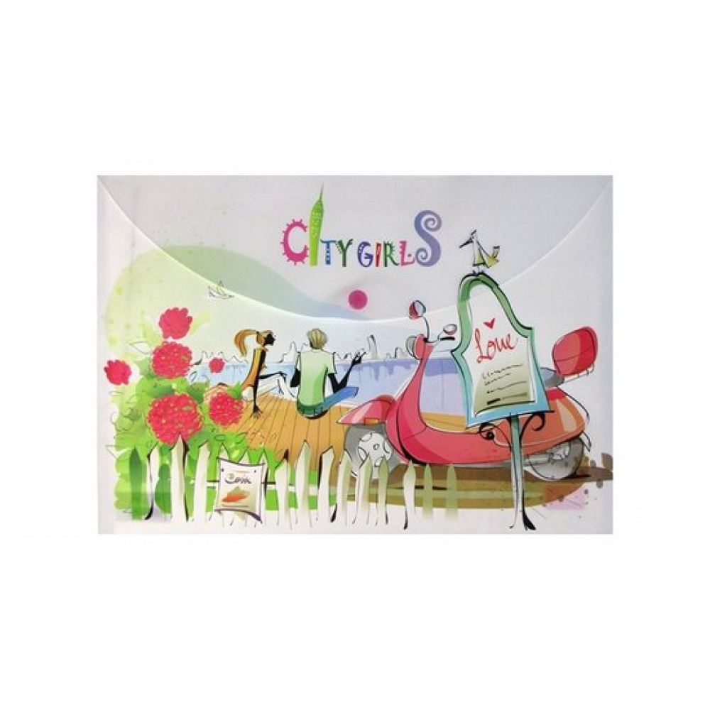 Папка-конверт формату А4 виготовлена з поліпропілену щільністю 180 мкм. Закривається на кнопку. Зручна для зберігання і перенесення документів, запобігає їх зминання і забруднення.