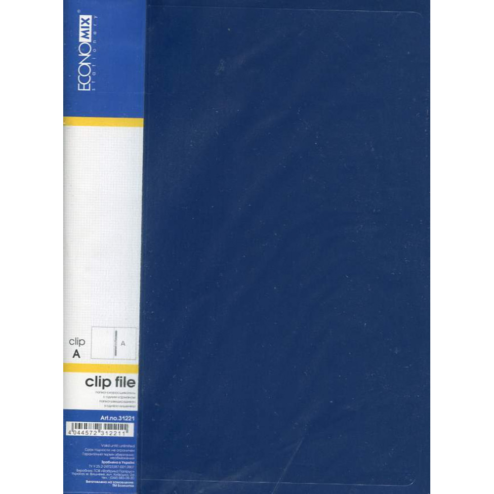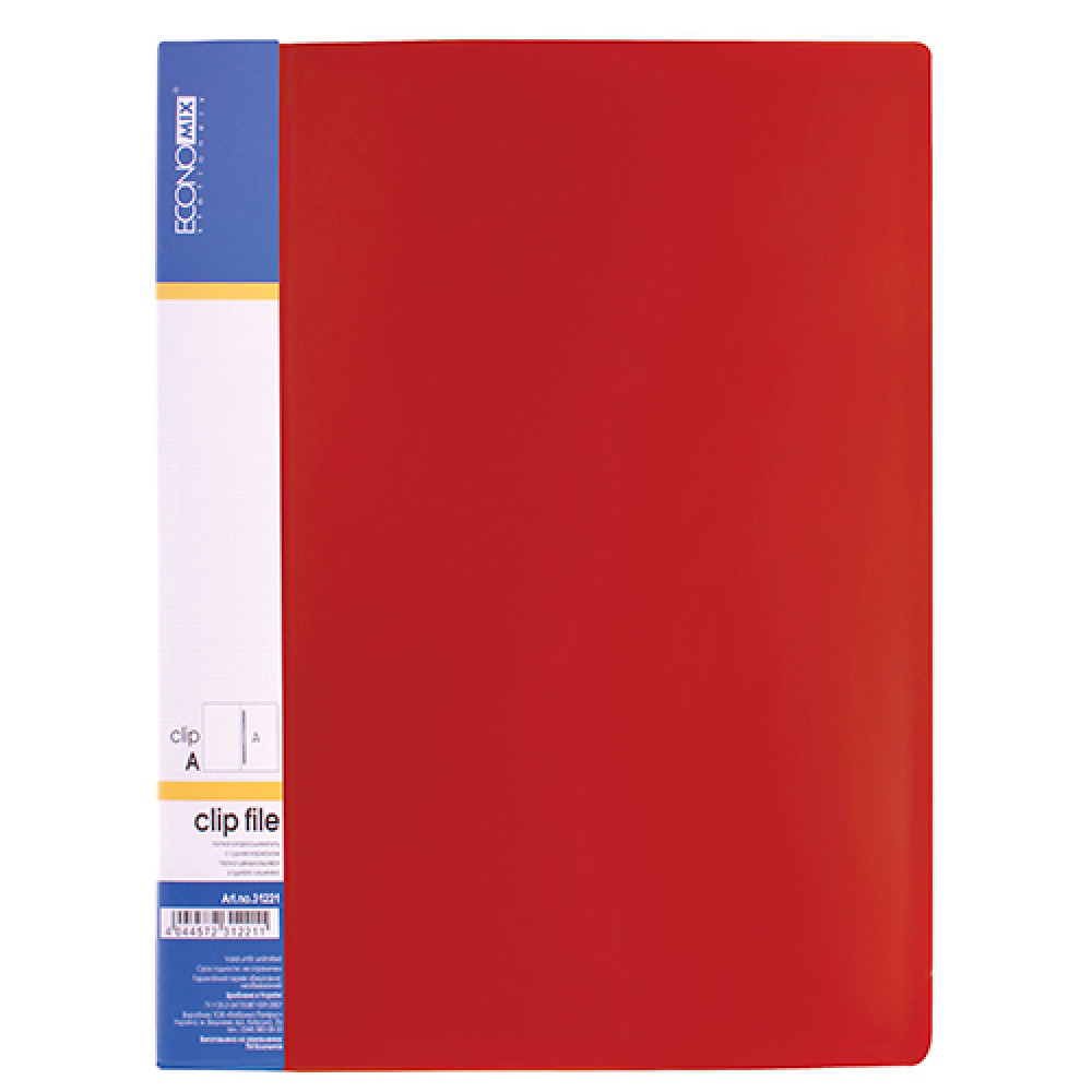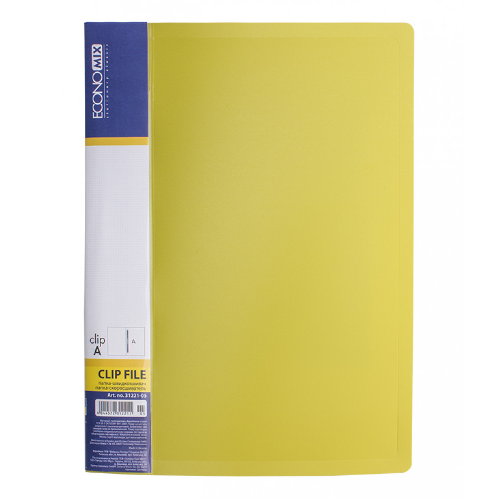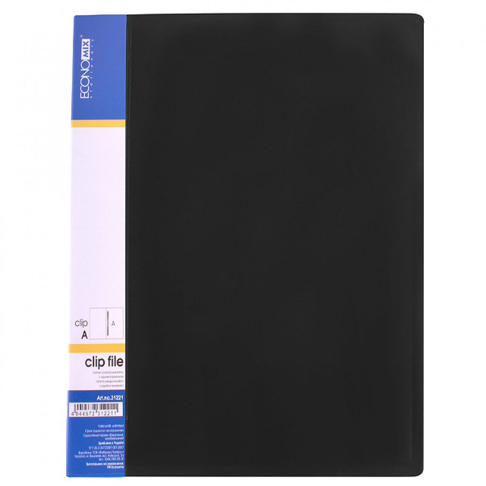 Папка виготовлена з поліпропілену щільністю 700 мкм. Спосіб зажиму: кліп А.