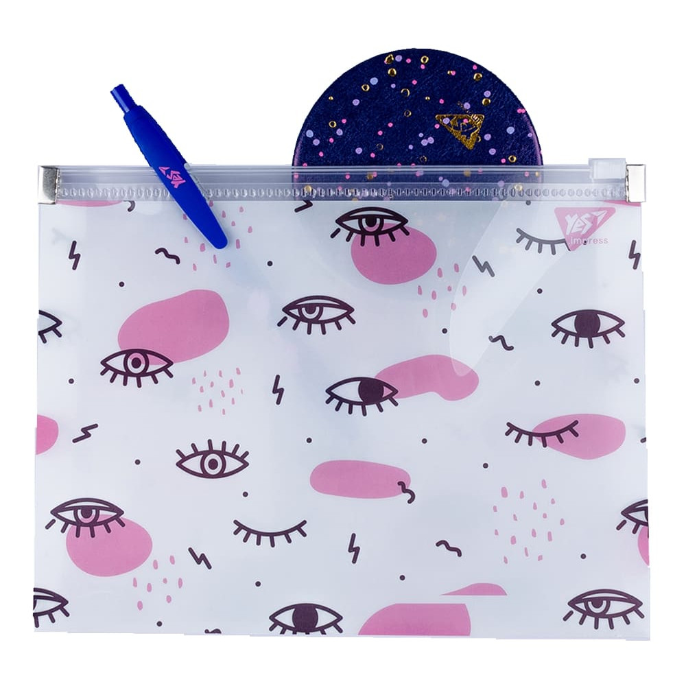 Папка-конверт "Donna" - стильний аксесуар однойменної колекції торгової марки YES. Призначена для зручного зберігання та перенесення різноманітних речей та аксесуарів. Формат: В6+, розмір: 15 х 20 х 3 см. Папка з дном, що розширюється, за рахунок чого збільшена її місткість! Прозорий пластик, принт з обох сторін, пластикова застібка-блискавка, металеві фіксатори-обмежувачі з боків виключають "вискакування" зіпера. Зручно, стильно і завжди під рукою разом з папками торгової марки YES!