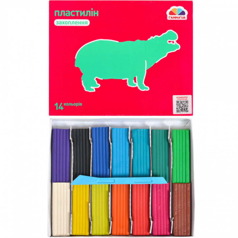 Пластилін 14 кольорів з ножиком, на восковій основі. Не липне до рук, не токсичний. Матеріал для ліплення. Забарвлюється в різні кольори. Служить для виконання фігур ескізів для скульптурних робіт, невеликих моделей, творів малих форм.
