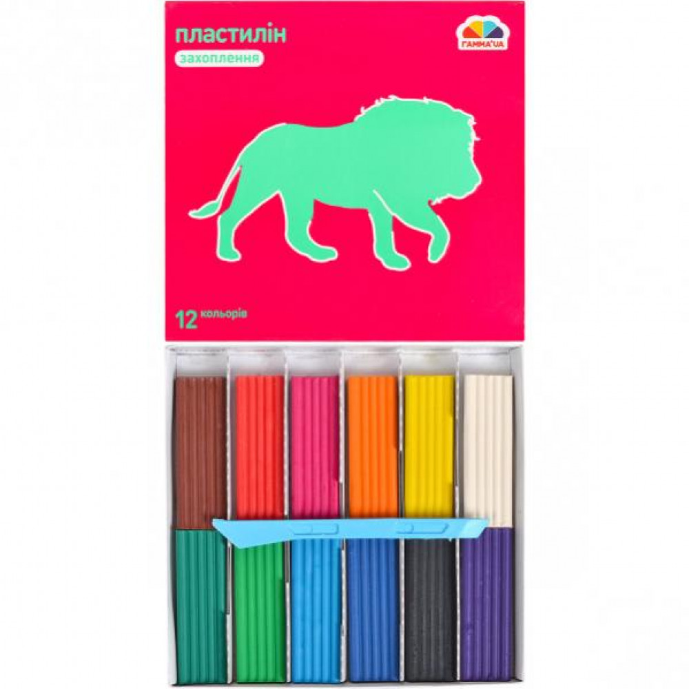 Пластилін 12 кольорів з ножиком, на восковій основі. Він не липне до рук, не токсичний. Матеріал для ліплення. Забарвлюється в різні кольори. Служить для виконання фігур ескізів для скульптурних робіт, невеликих моделей, творів малих форм.