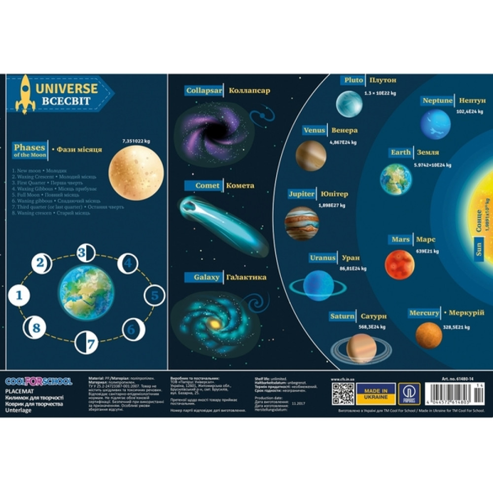 Виконана з міцного пластику, який має рівну поверхню. Має високу зносостійкість і практичність у використанні. Килимок не ковзає і не дряпає робочу поверхню під час занять. Легко миється водою.