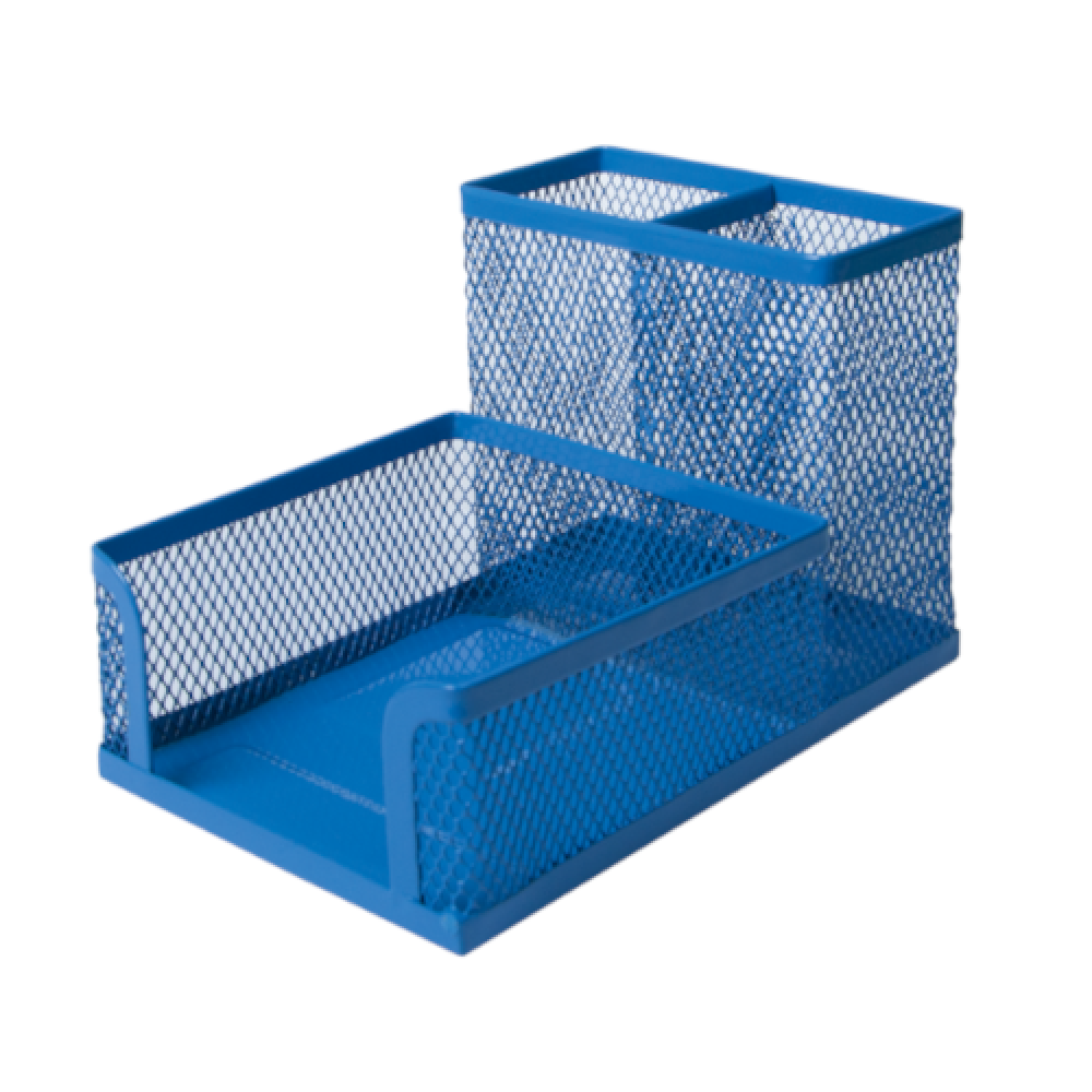 Настільний набір від Buromax створений для організації комфортного робочого місця і розміщення письмового приладдя, паперів для записів і інших необхідних в роботі канцелярських атрибутів. Виготовлений з металевої сітки. Згладжені шви на виробі для безпеки при використанні. Виконано в строгому дизайні з метала і доповнить ділової офісний інтер'єр. Розмір: 100x150x90 мм.