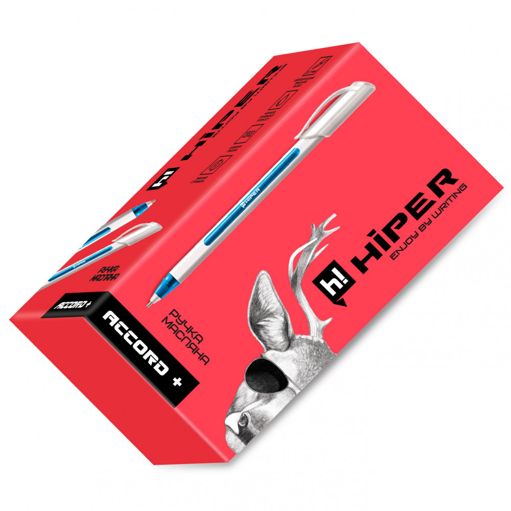 Вишуканий дизайн, зручний профільований корпус, м'яке і чисте писання — все це про гелеву ручку Hiper Accord + HO-550. Дана модель представлена в пластиковому трехгранном корпусі, товщина стержня 0.7 мм, а довжина писання 1200 м. Чорнила зниженої в'язкості і легко замінюються. Колір чорнила — синій.