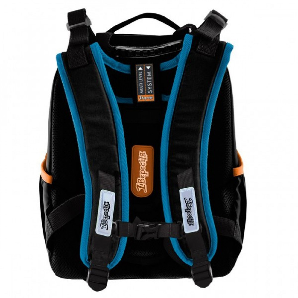 Щільний жорсткокаркасний рюкзак на два відділення. Передня панель виконана з щільного EVA-матеріалу, який не деформується при легкому натисканні, зберігаючи форму навіть при нерівномірному завантаженні рюкзака. Нанесений шовкографічний друк. Рельєфна ортопедична спинка з каналами для циркуляції повітря перешкоджає викривленню хребта. В основному, в найбільшому відділенні розташовані жорсткі перемички-вставки для комфортного розміщення зошитів або підручників. У передньому відділенні передбачений органайзер з кишенею для мобільного телефону, відділеннями для ручок і олівців, підвіскою для ключів. Регульовані м'які лямки дозволяють виставити максимально комфортну висоту по спині дитини. Є додаткова фіксація лямок за допомогою нагрудного ременя. Дві бічні кишені для пляшки з водою та інших особистих речей. Посилене дно з захисними накладками. Зручна ручка для перенесення. Світловідбиваючі елементи забезпечать видимість дитини в темний час доби. Компактний розмір рюкзака ідеально підходить навіть для самих маленьких діток - він не тисне на плечі і не важкий для дитини навіть в наповненому стані. Розмір: 36 х 27 х 16 см.