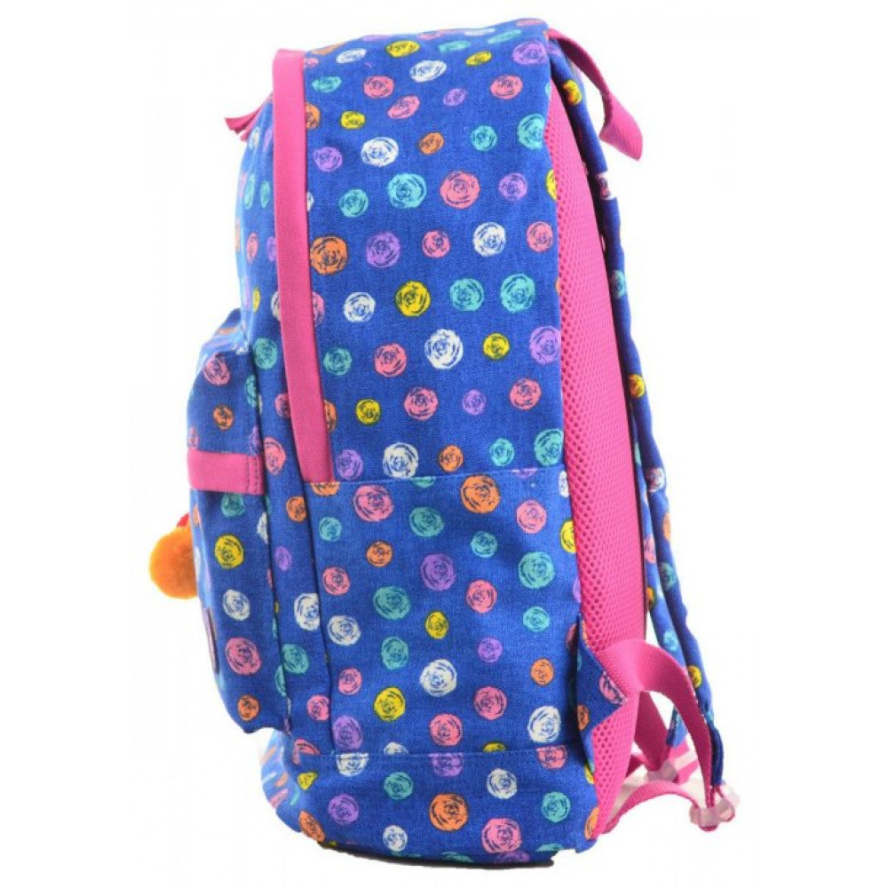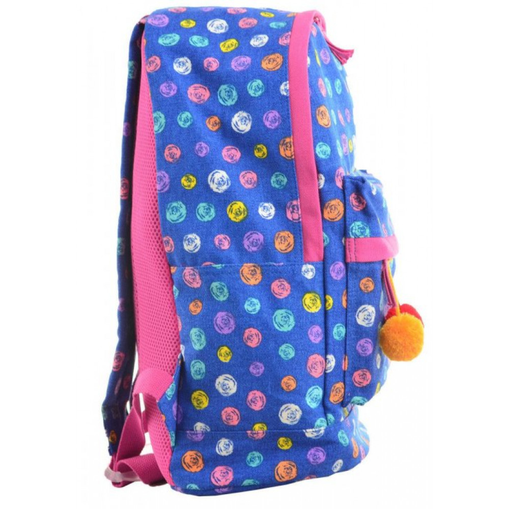 Габарити: 29х35х12 см. Об'єм: 13 літрів. Вага: 400 г. Основний матеріал: полотняна тканина, канвас. Особливості: стильний рюкзак стане у нагоді за будь-якого випадку. Кишеня на блискавці збереже речі від втрати, а додаткова кишеня для мобільного і кишеня для дріб’язку вмістять всі необхідні речі. Рюкзак зручно тримати або підвішувати – за котонову ручку. Додаткова прикраса — аксесуар у вигляді бубончика. Додатково: кишеня для телефону, сітчаста спинка.