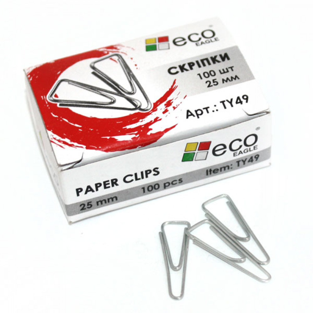 Скріпки Eco-Eagle нікельовані 25 мм 100 шт TY49