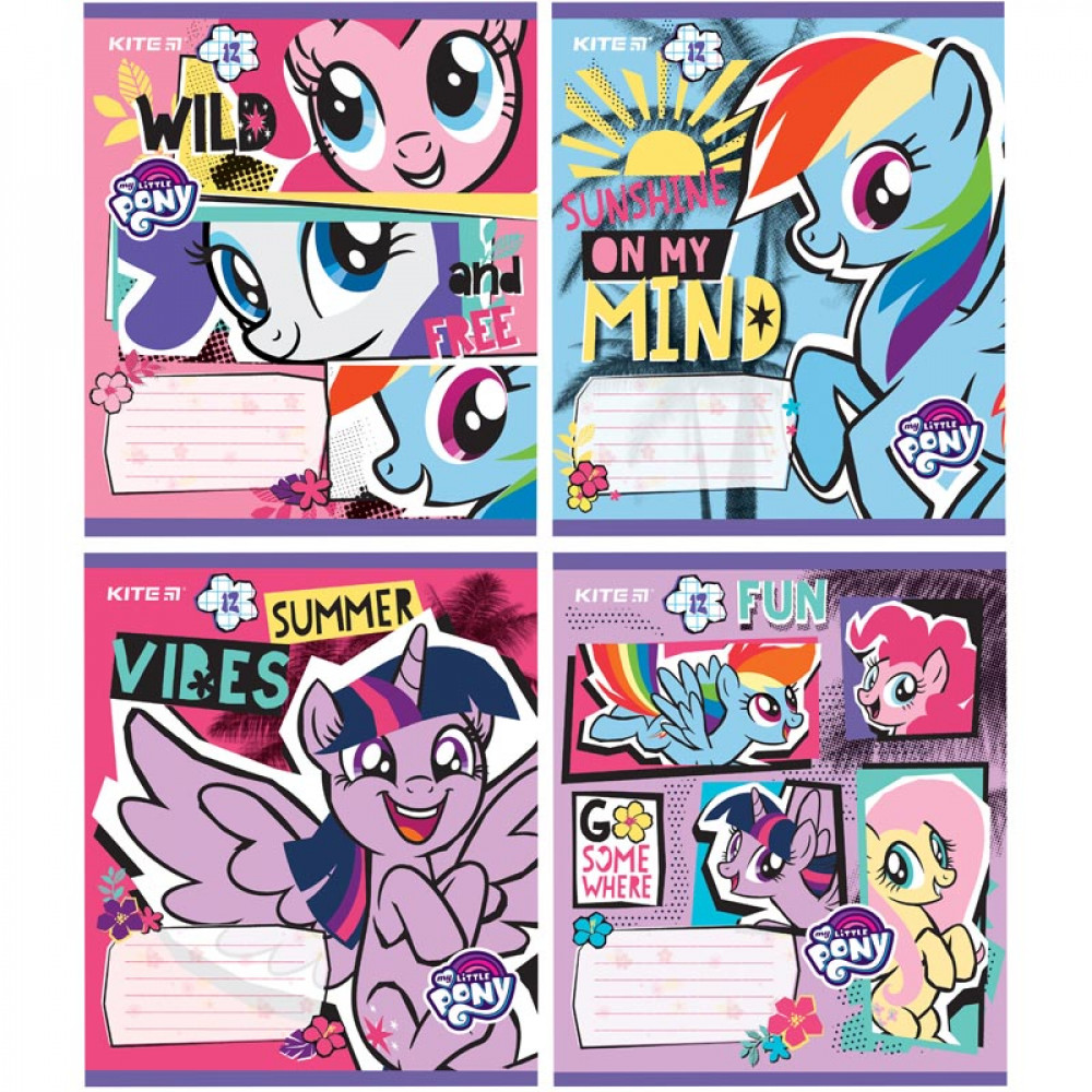 Шкільний зошит Kite 12 листів, листи з щільного паперу у клітинку, ущільнена кольорова обкладинка, 4 варіанти дизайну.