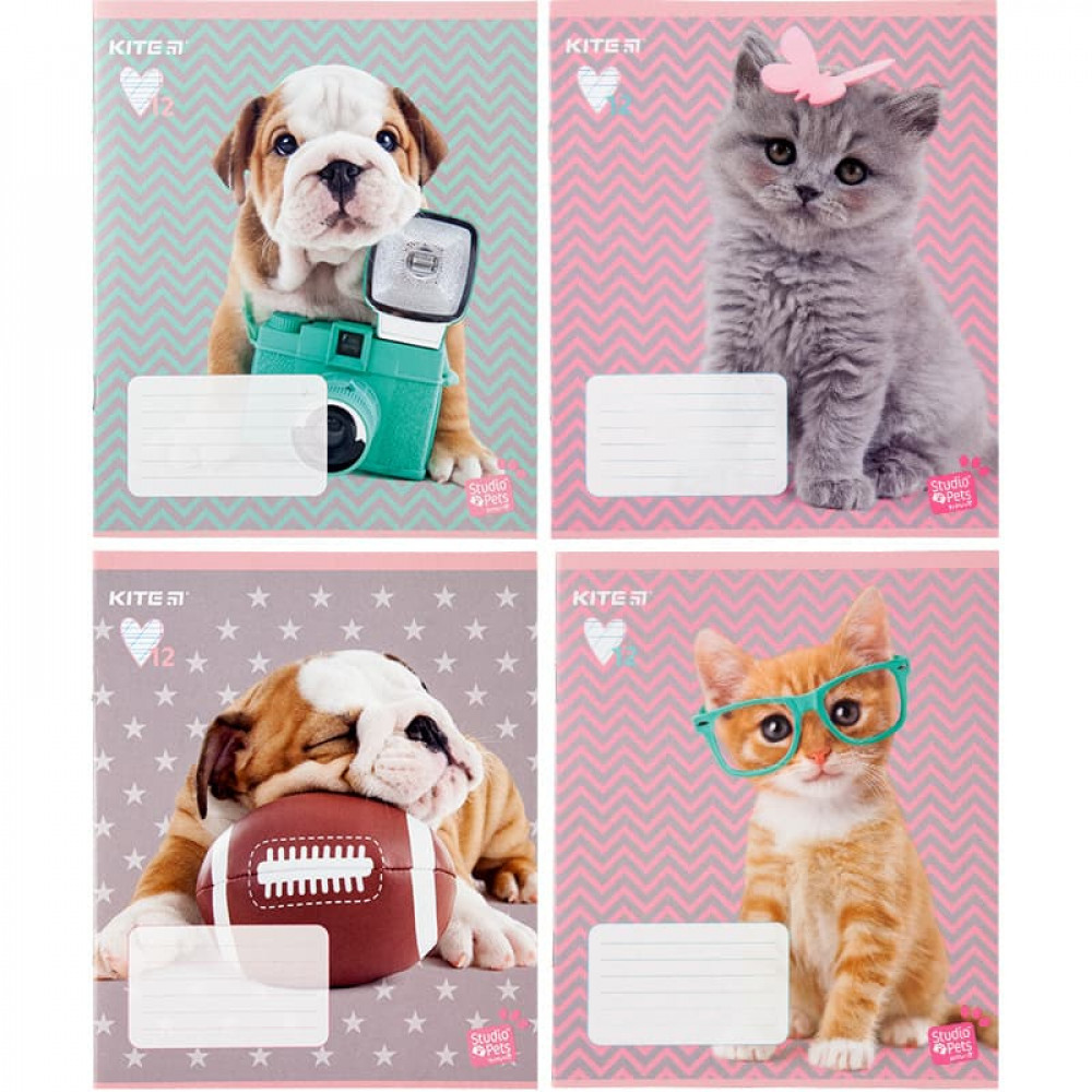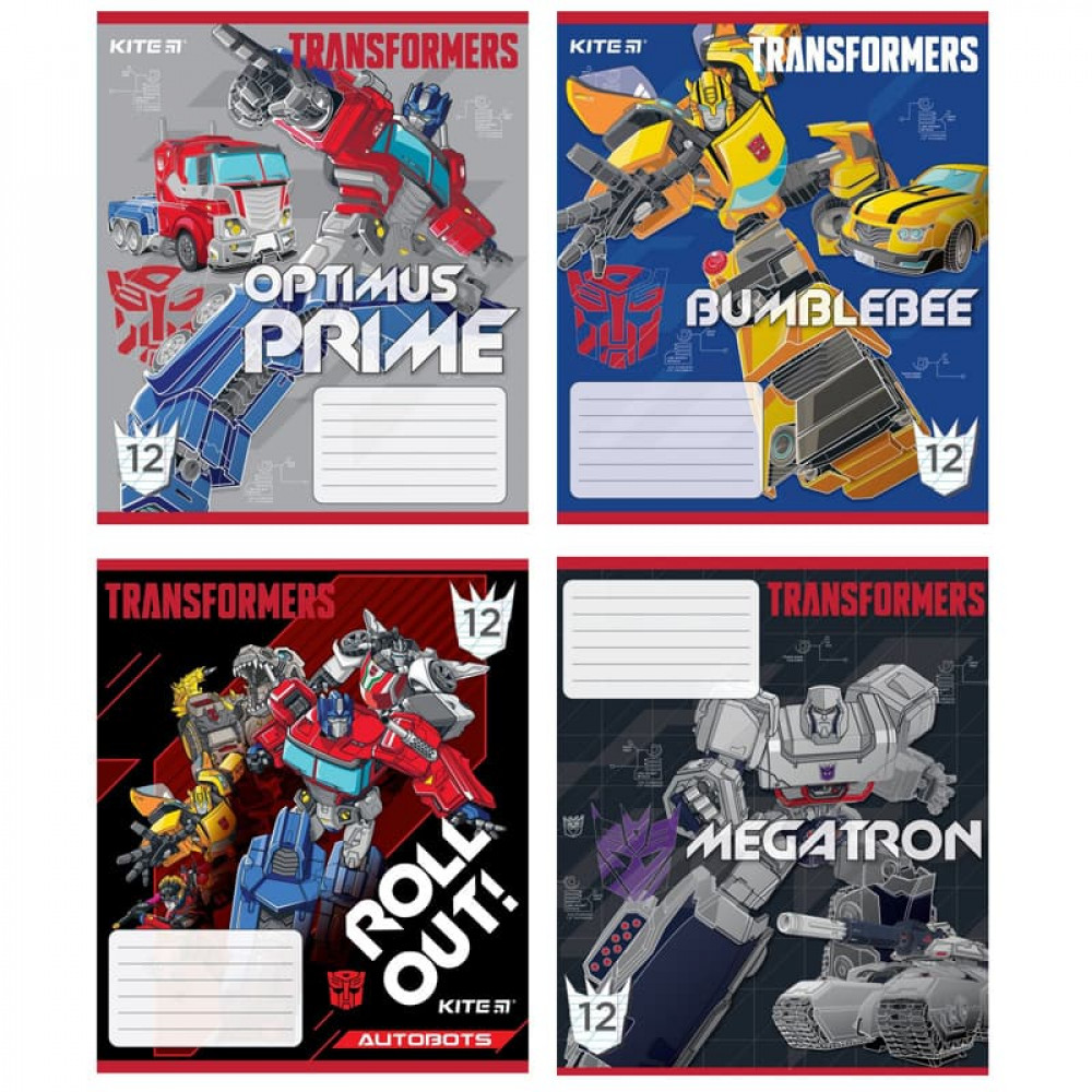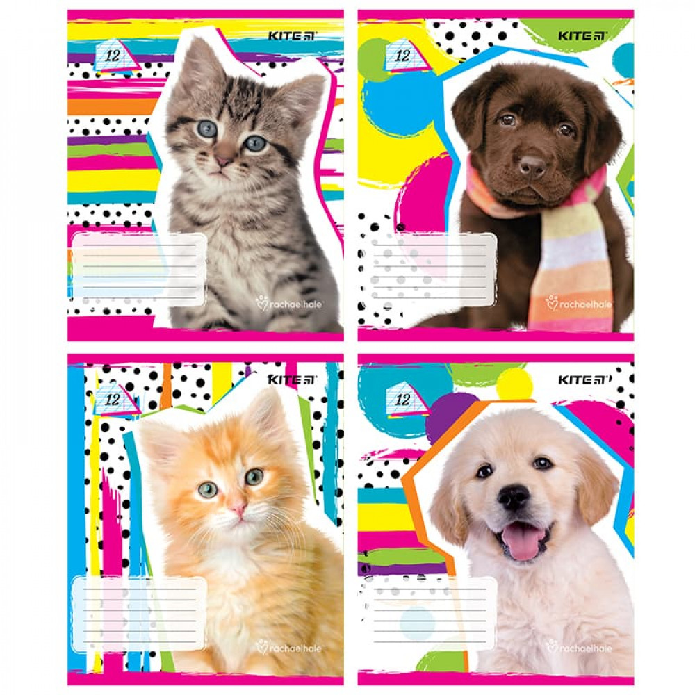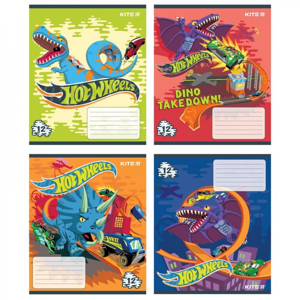 Шкільний зошит Kite 12 листів, листи з щільного паперу в косу лінію, ущільнена кольорова обкладинка, 4 варіанти дизайну.