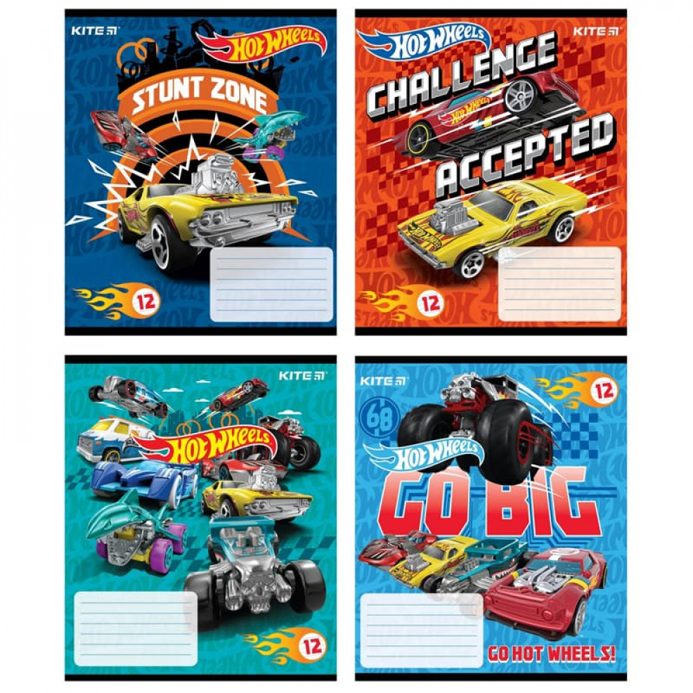 Шкільний зошит Kite 12 листів, листи з щільного паперу в лінію, ущільнена кольорова обкладинка, 4 варіанти дизайну.